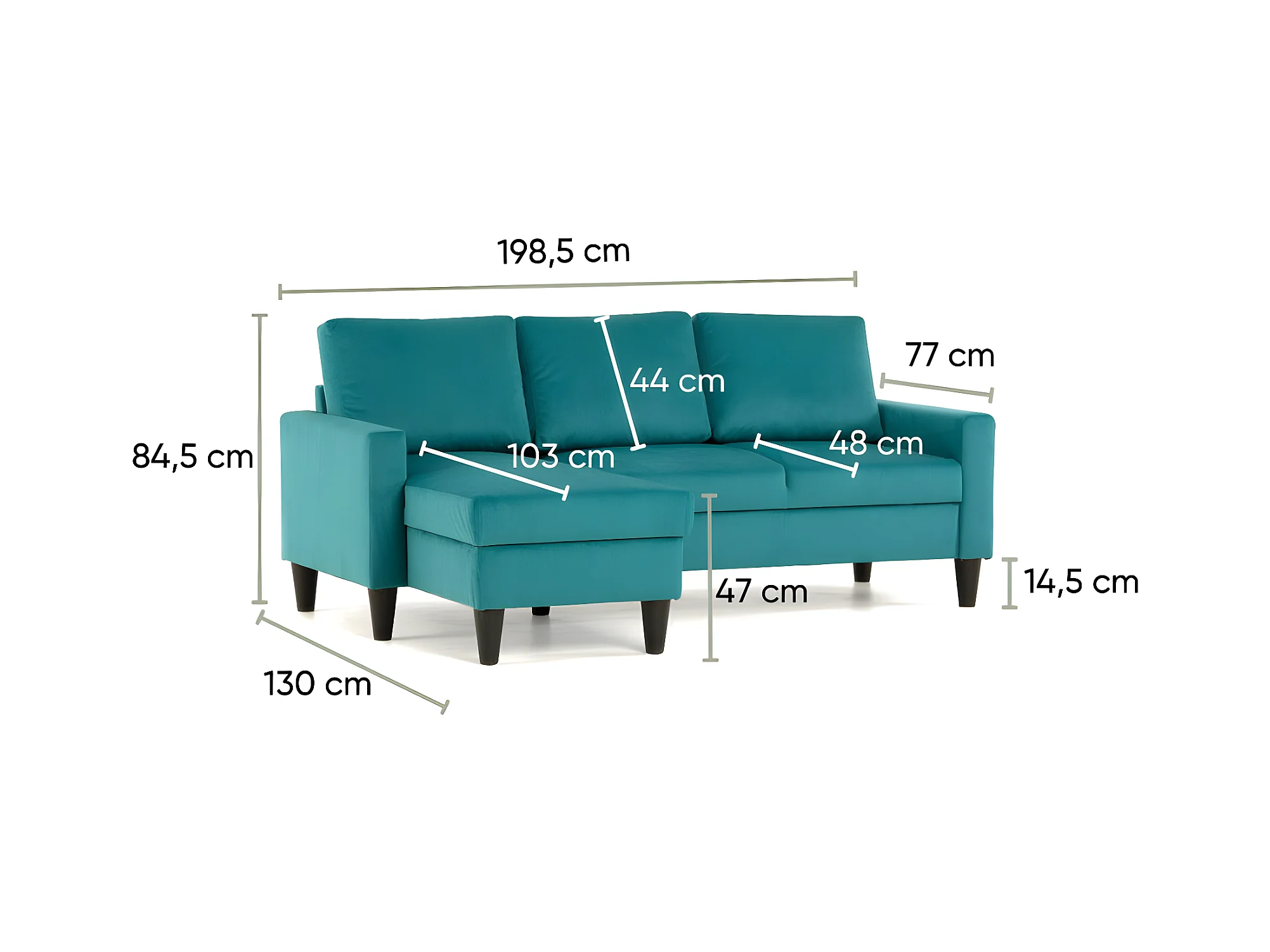 Divano 3-post chaise longue omkeerbaar in polyester turchese