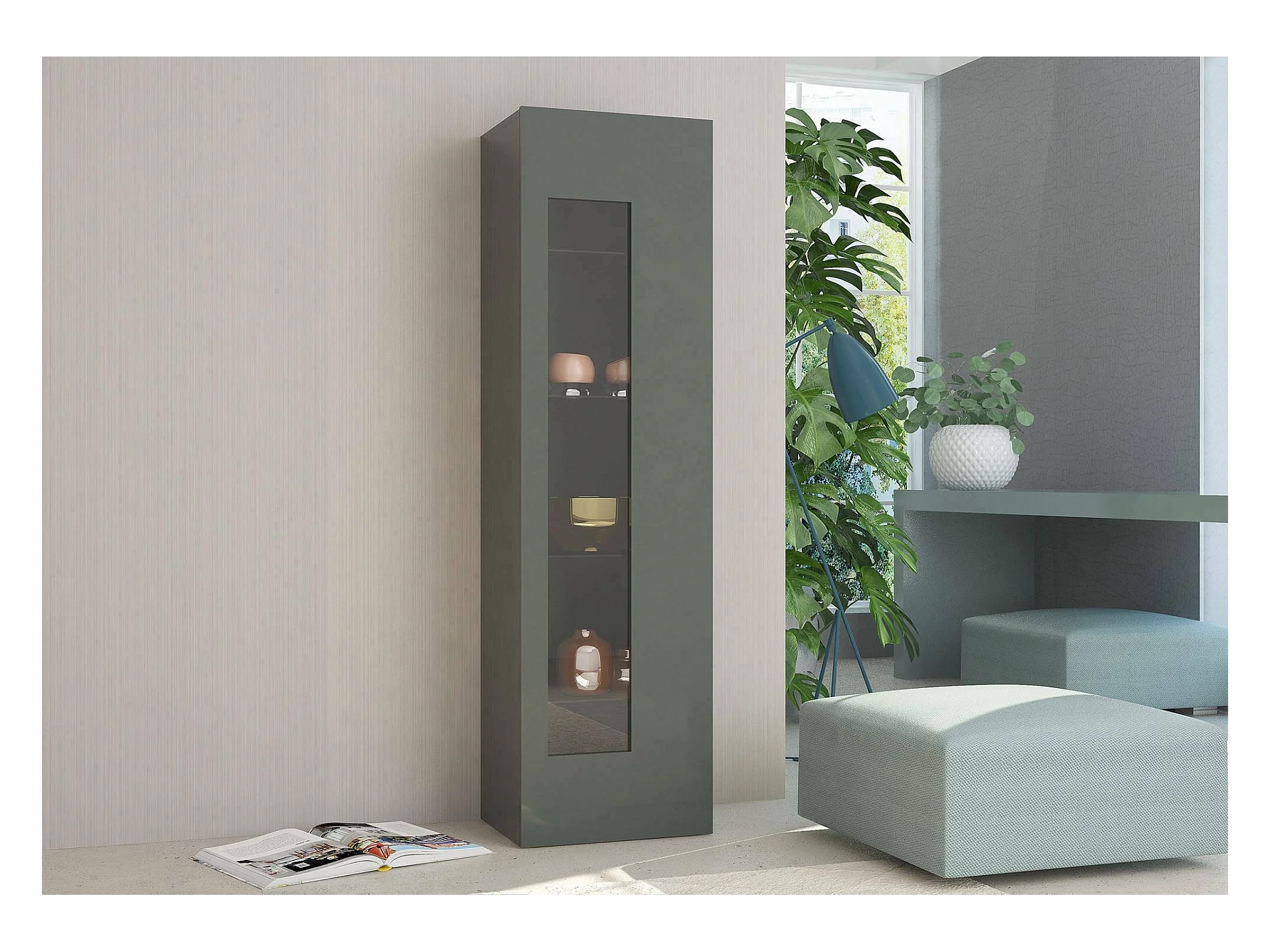 Dndi vitrine, 1-deurs dressoir met glazen planken, Multifunctioneel woonkamermeubilair, 100% Made in Italy, 40x30h180 cm, Antraciet