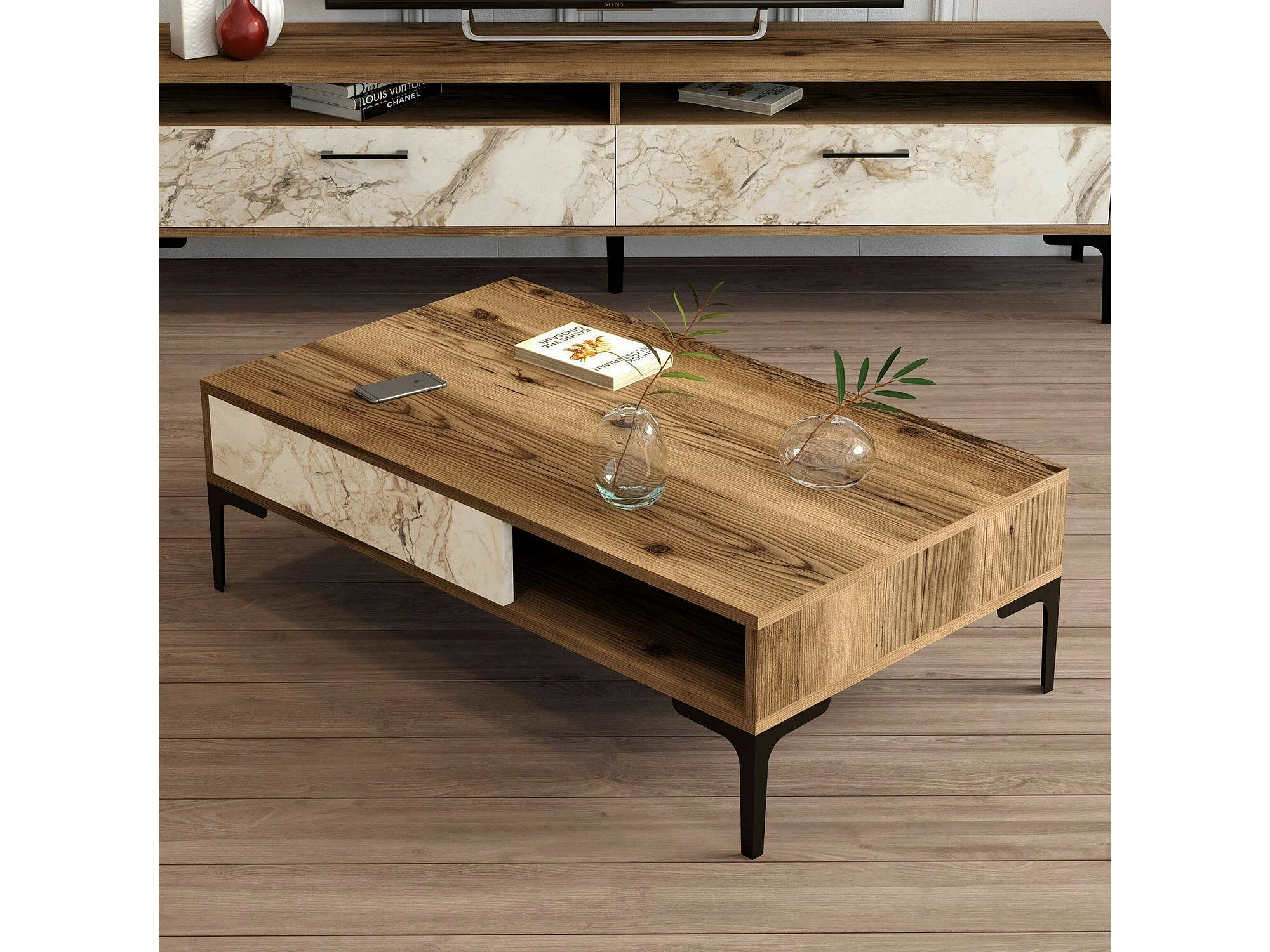 Djagiell Salontafel, Salontafel, Sofa Review Rack, Woonkamer Plank, 105x60h33 cm, Walnoot en Wit