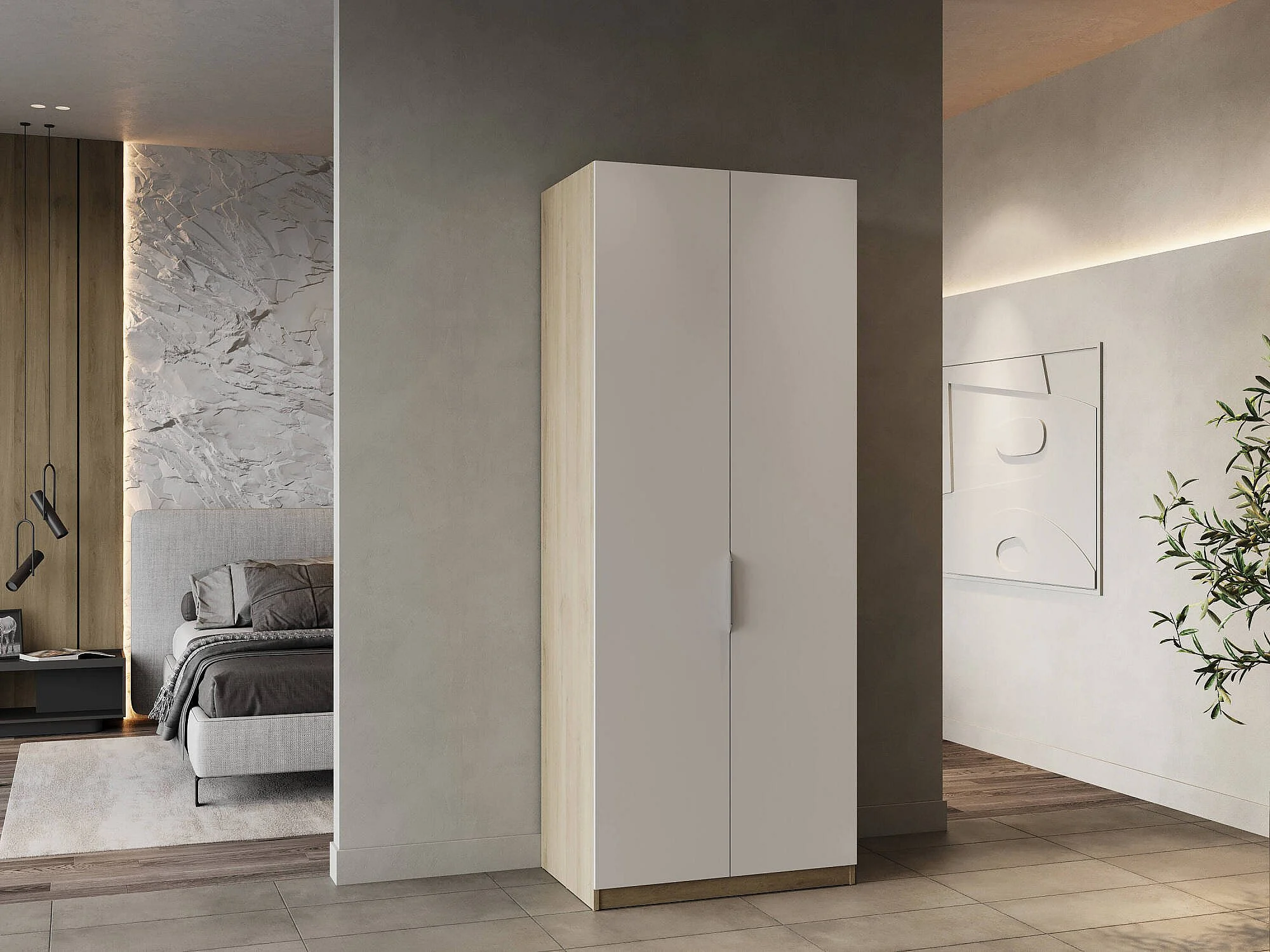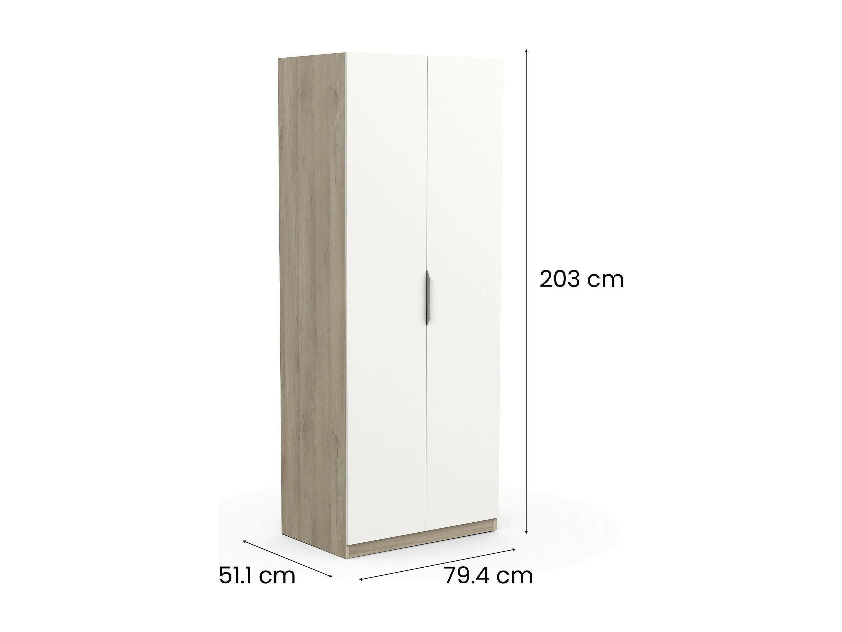 Djakobsso 2-deurskast, Slaapkamermeubel, Inloopkast, Kledingkast, 79x51 h203 cm, Eiken en mat wit