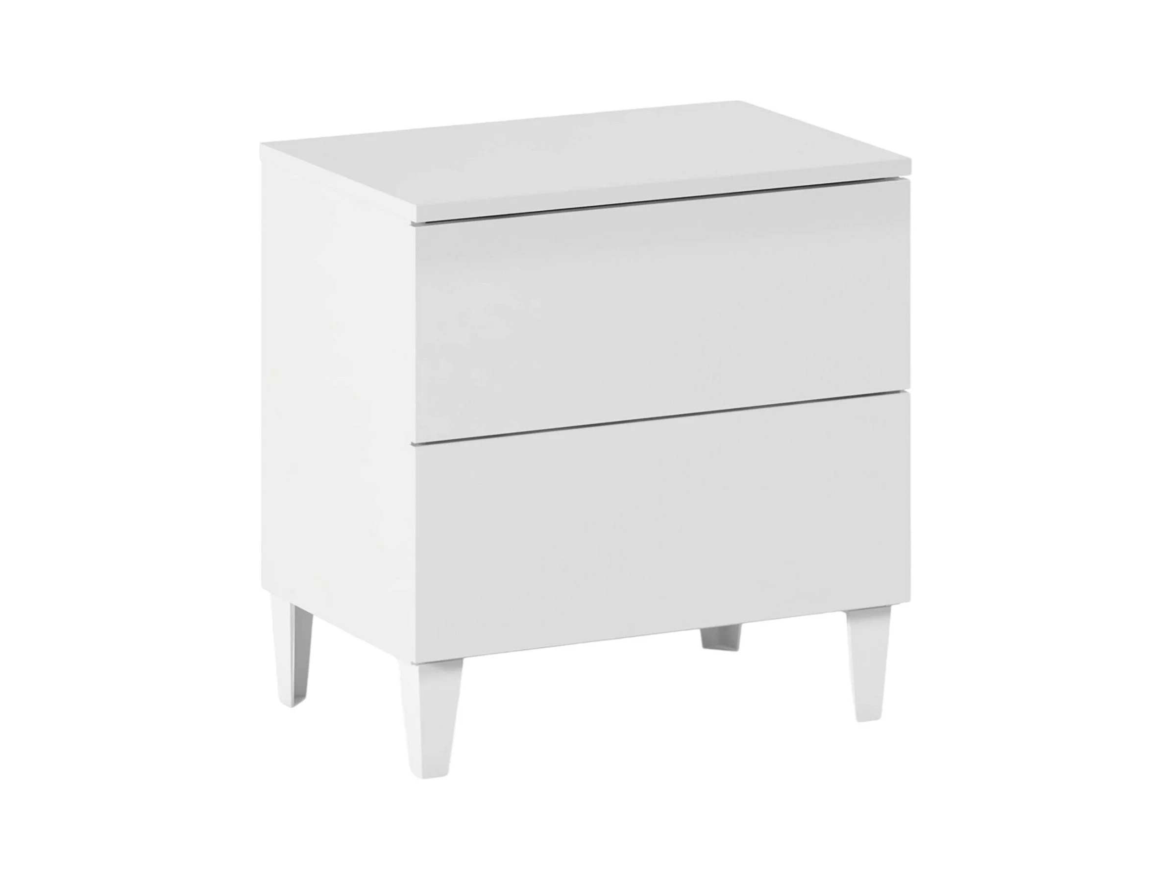 Dluki nachtkastje, Nachtkastje met 2 laden, Slaapkamerkast, 100% Made in Italy, 50x40h41 cm, Glanzend wit