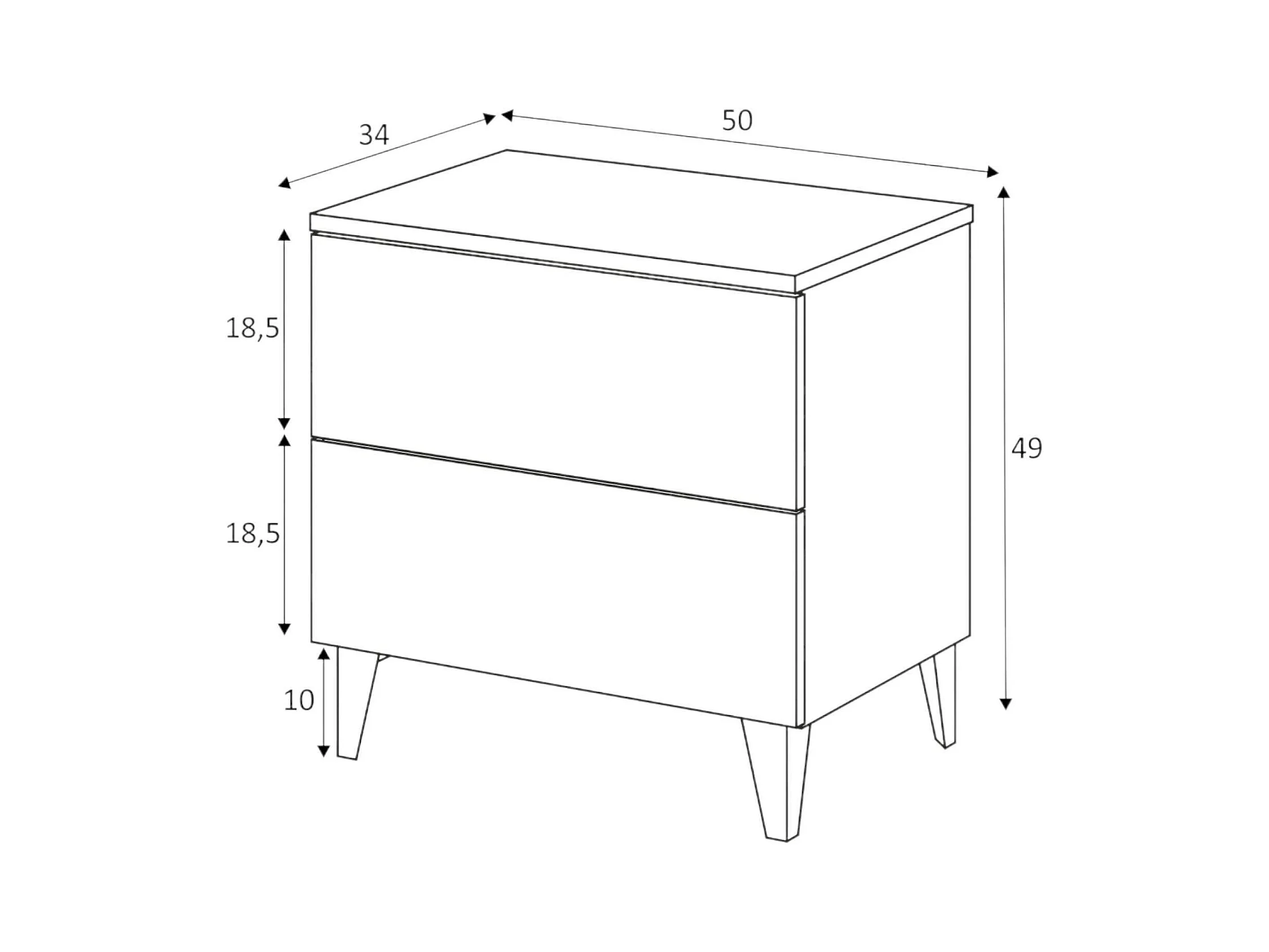 Dmila nachtkastje, Modern nachtkastje met 2 laden, Nachtkastje, Laag dressoir voor slaapkamer, 38x34h45 cm, Wit