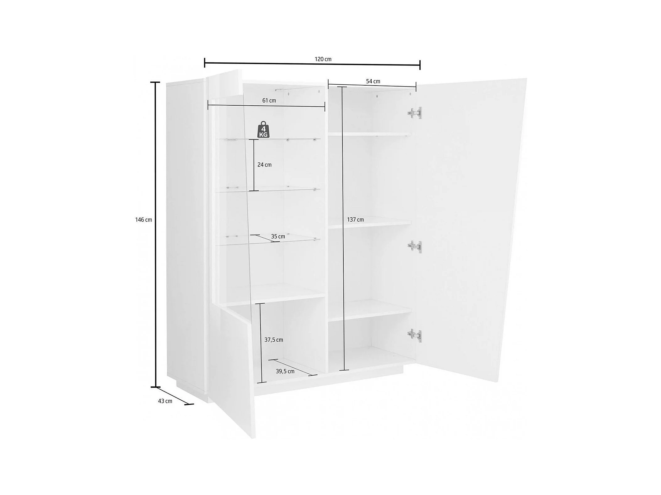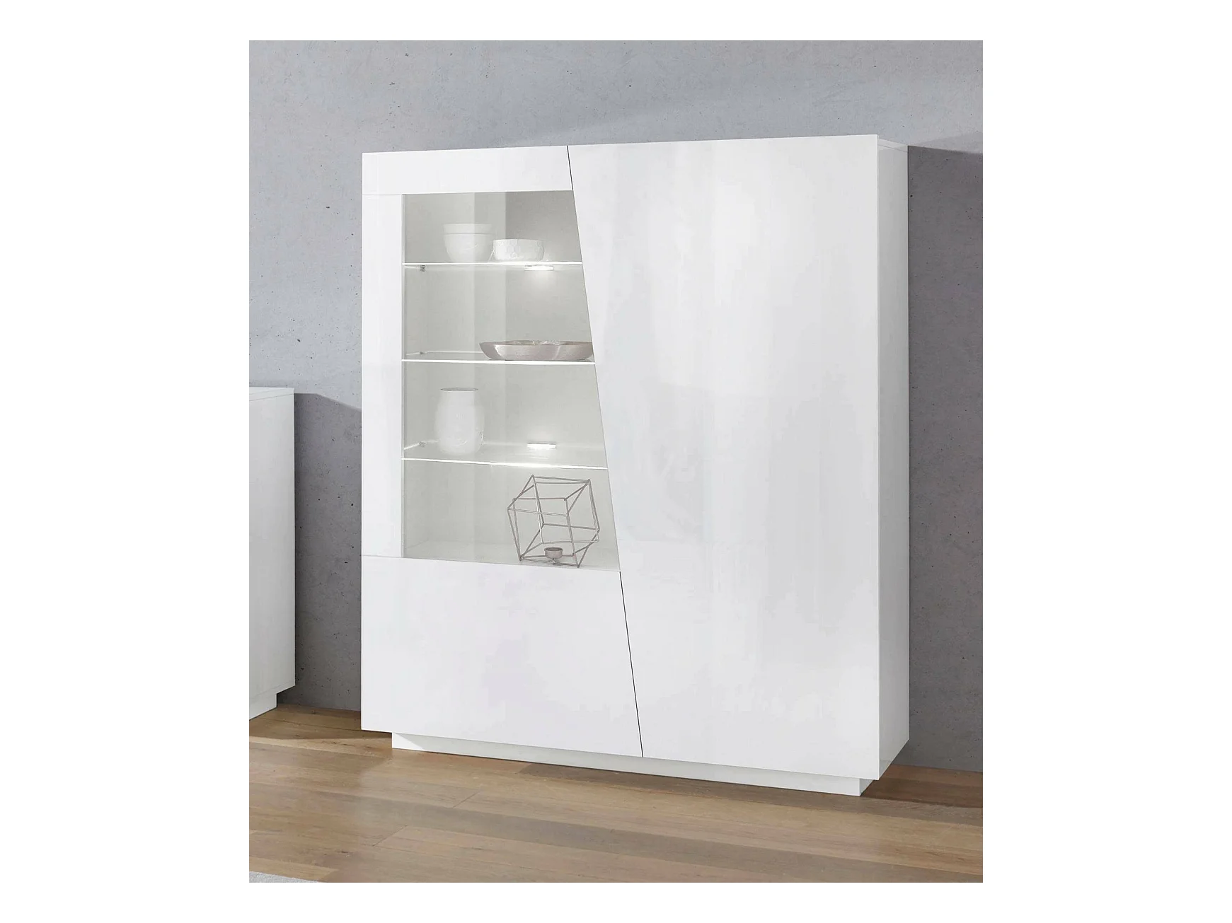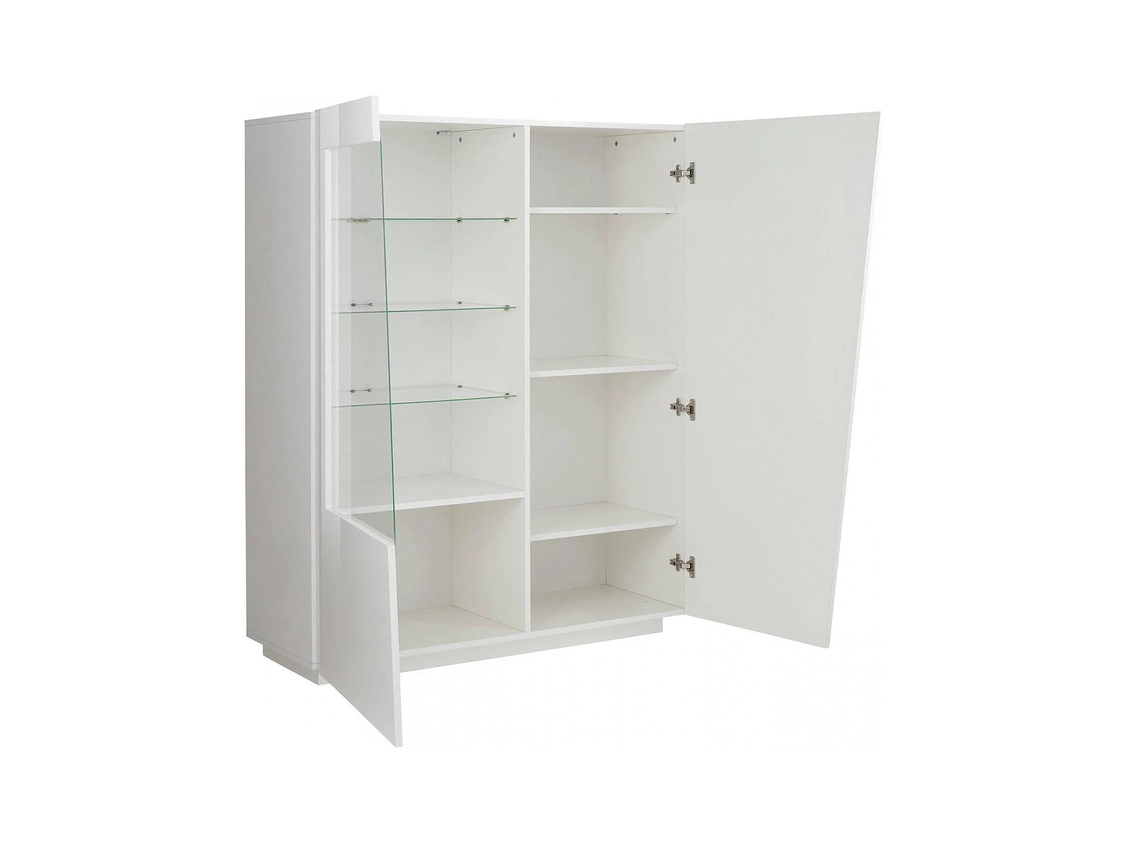 Moderne hoge vitrinekast 120 cm voor woonkamer 3 deuren corpus wit mat en fronten wit hoogglans