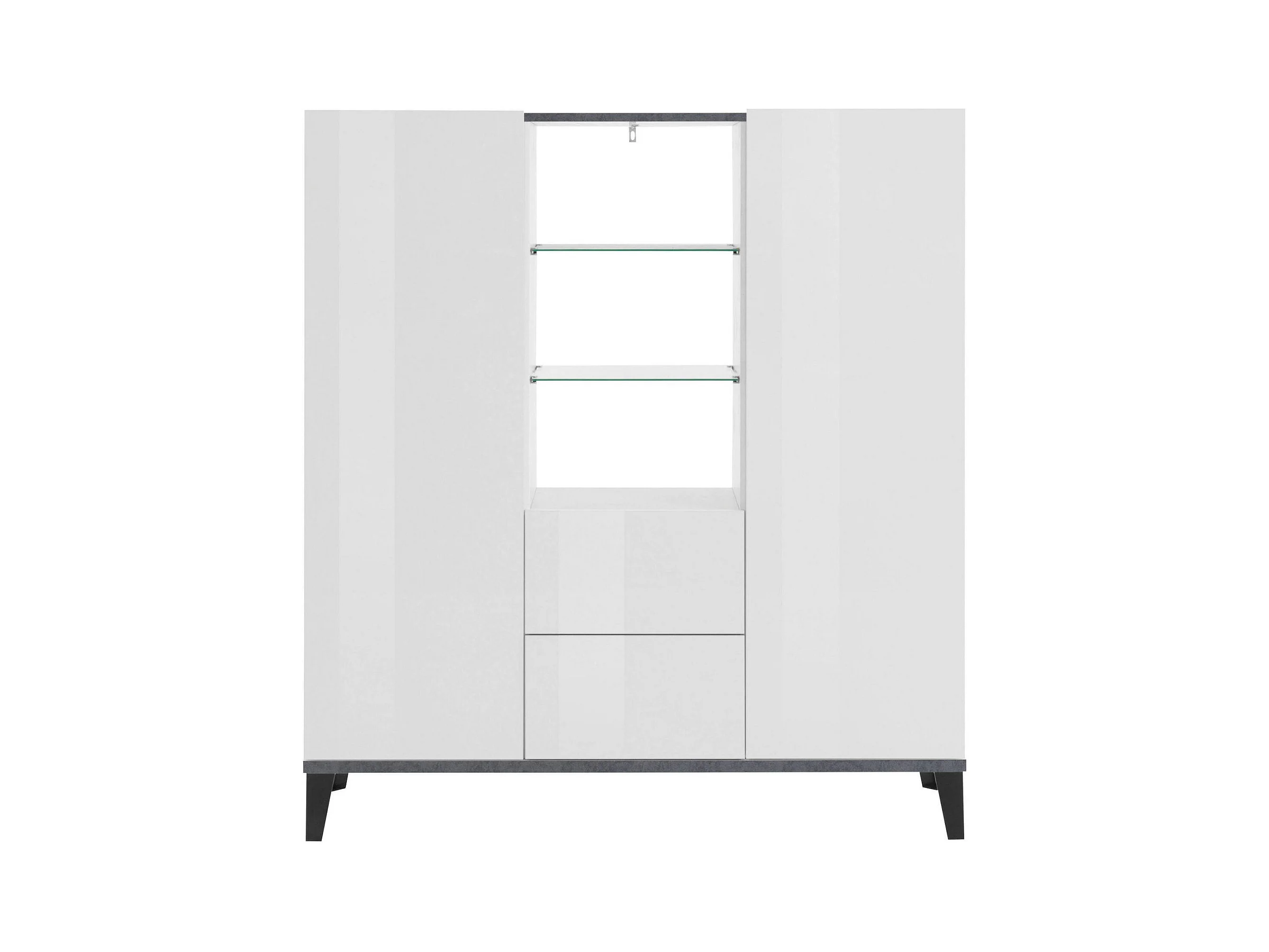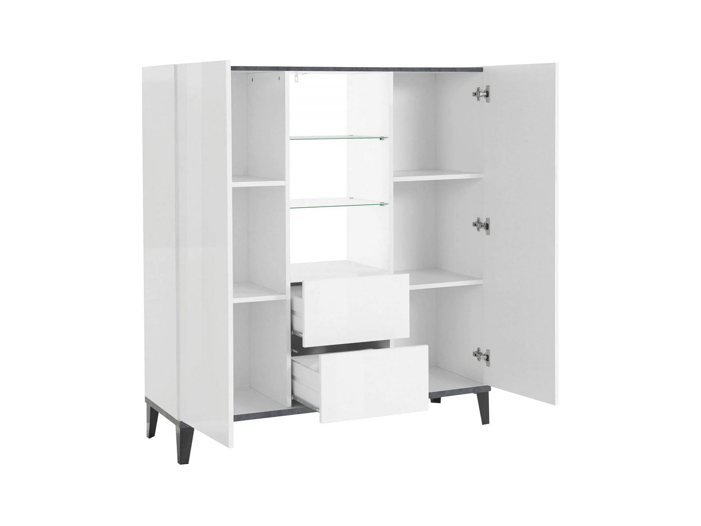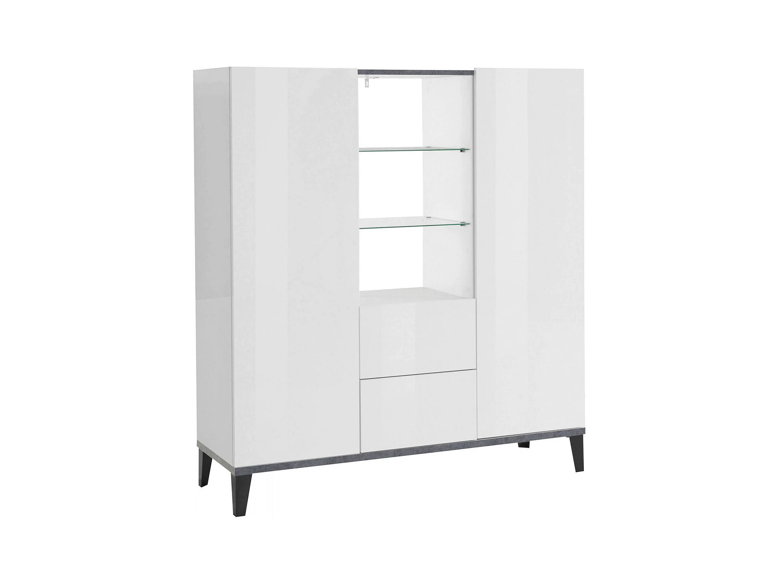 Dla dressoir, Keukendressoir met 2 deuren en 2 laden, Woonkamerbuffet, 100% Made in Italy, 120x40h133 cm, Glanzend wit en leisteen