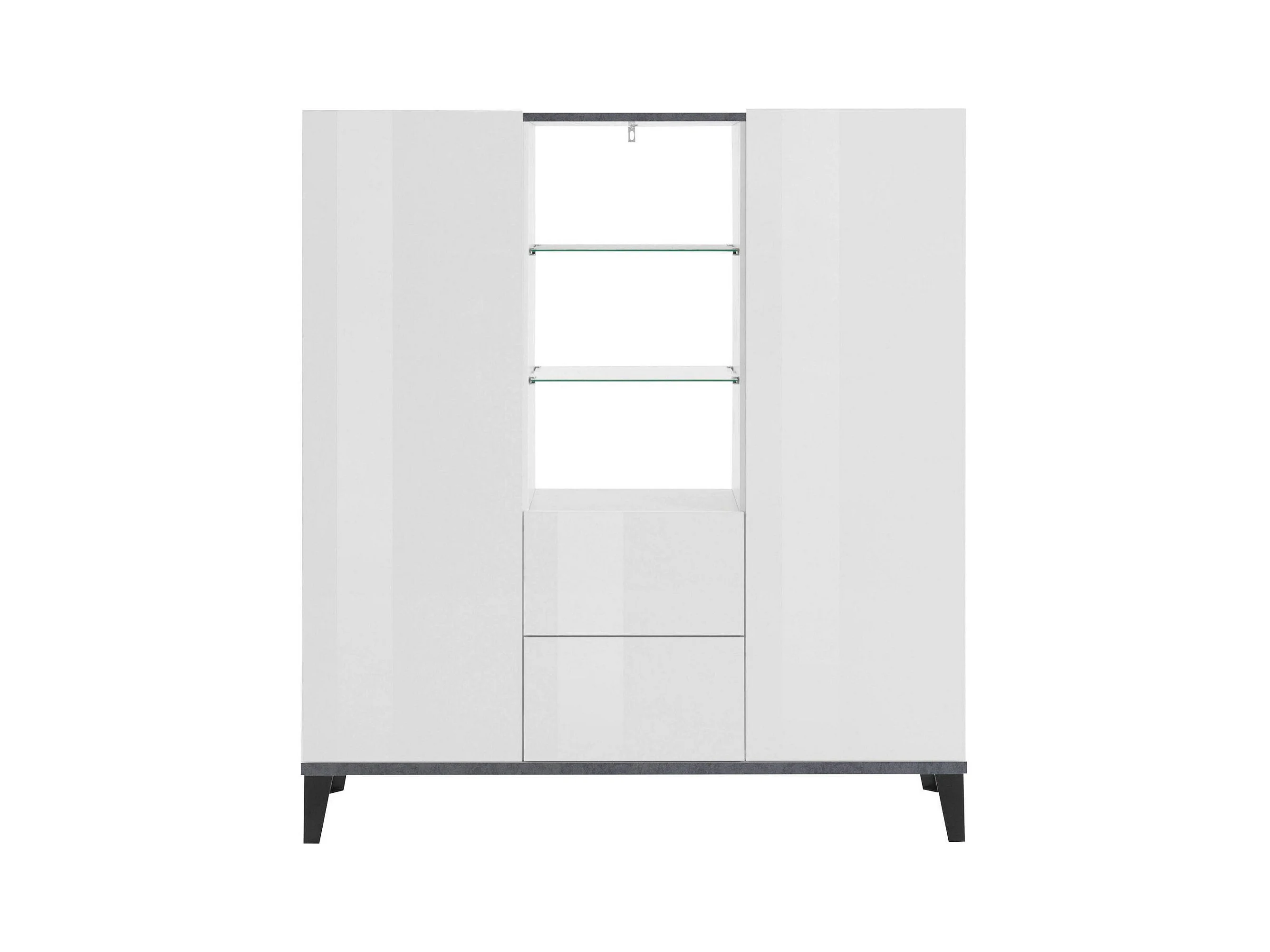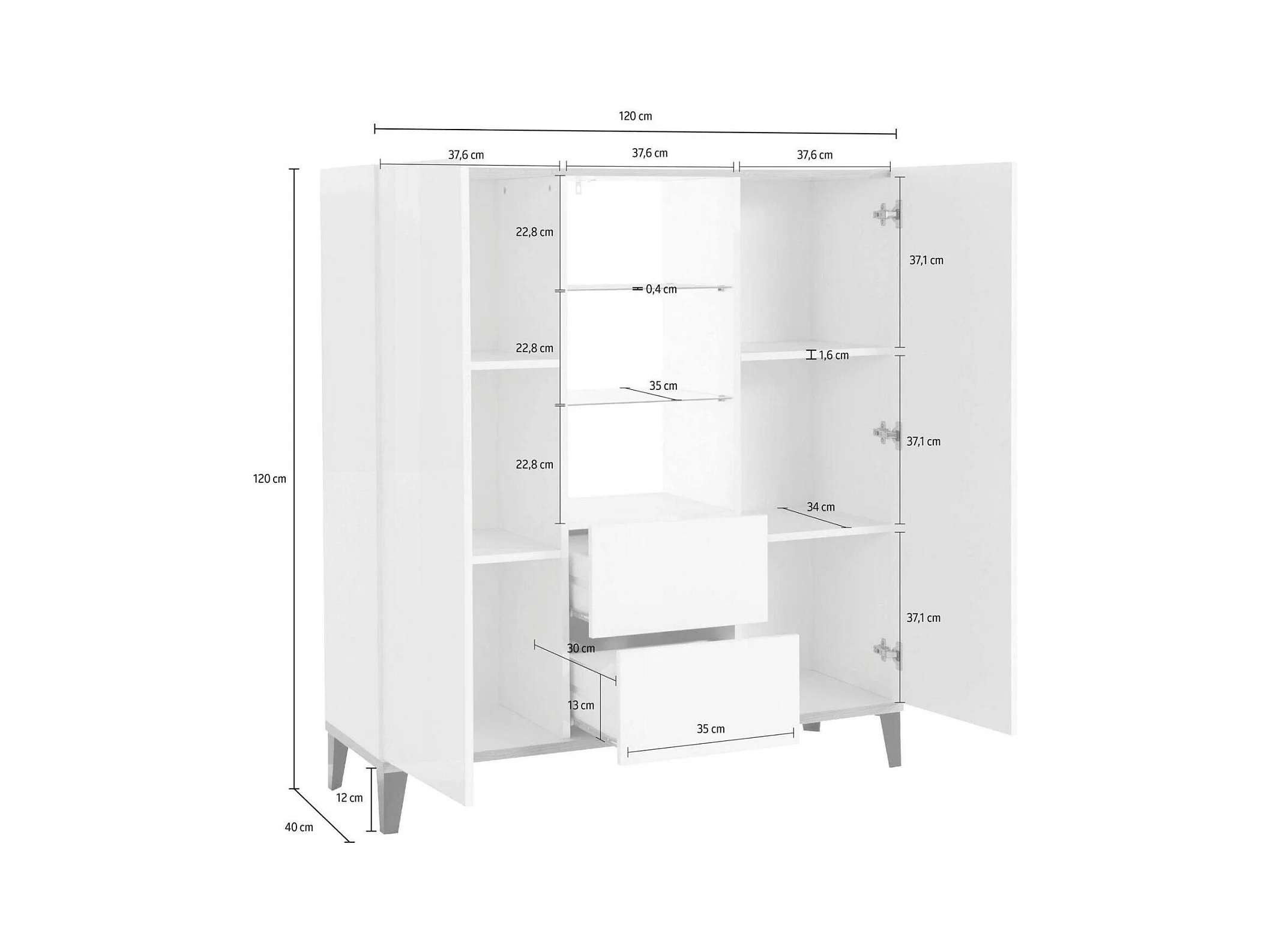 Dlorier dressoir, 4-deurs keukendressoir, Woonkamerbuffet, 100% Made in Italy, 120x43h126 cm, Glanzend wit