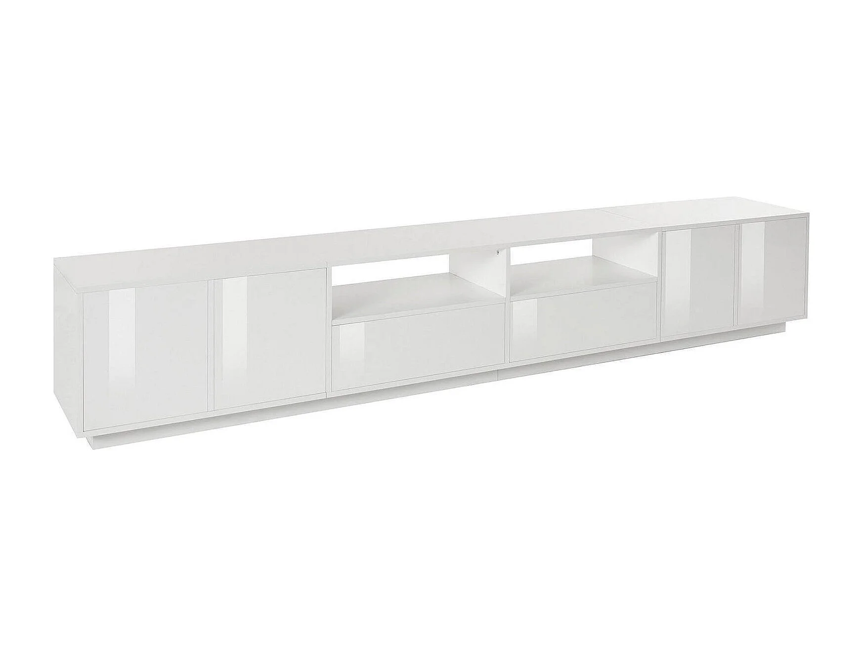 Dleott TV-meubel, Laag woonkamerdressoir, TV-meubelbasis, 100% Made in Italy, 260x41h46 cm, Glanzend wit