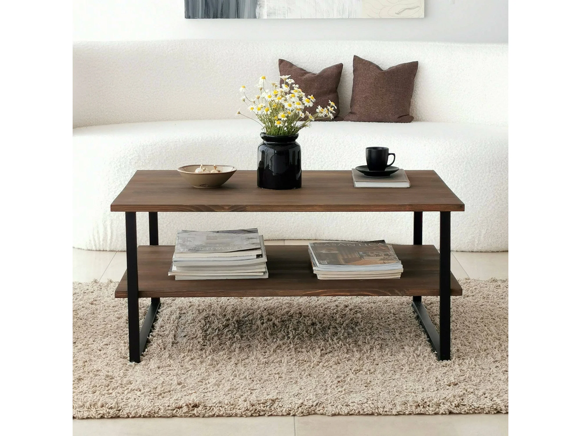 Dlionett Salontafel, Salontafel, Sofa Review Rack, Woonkamer Plank, 85x60h40 cm, Walnoot