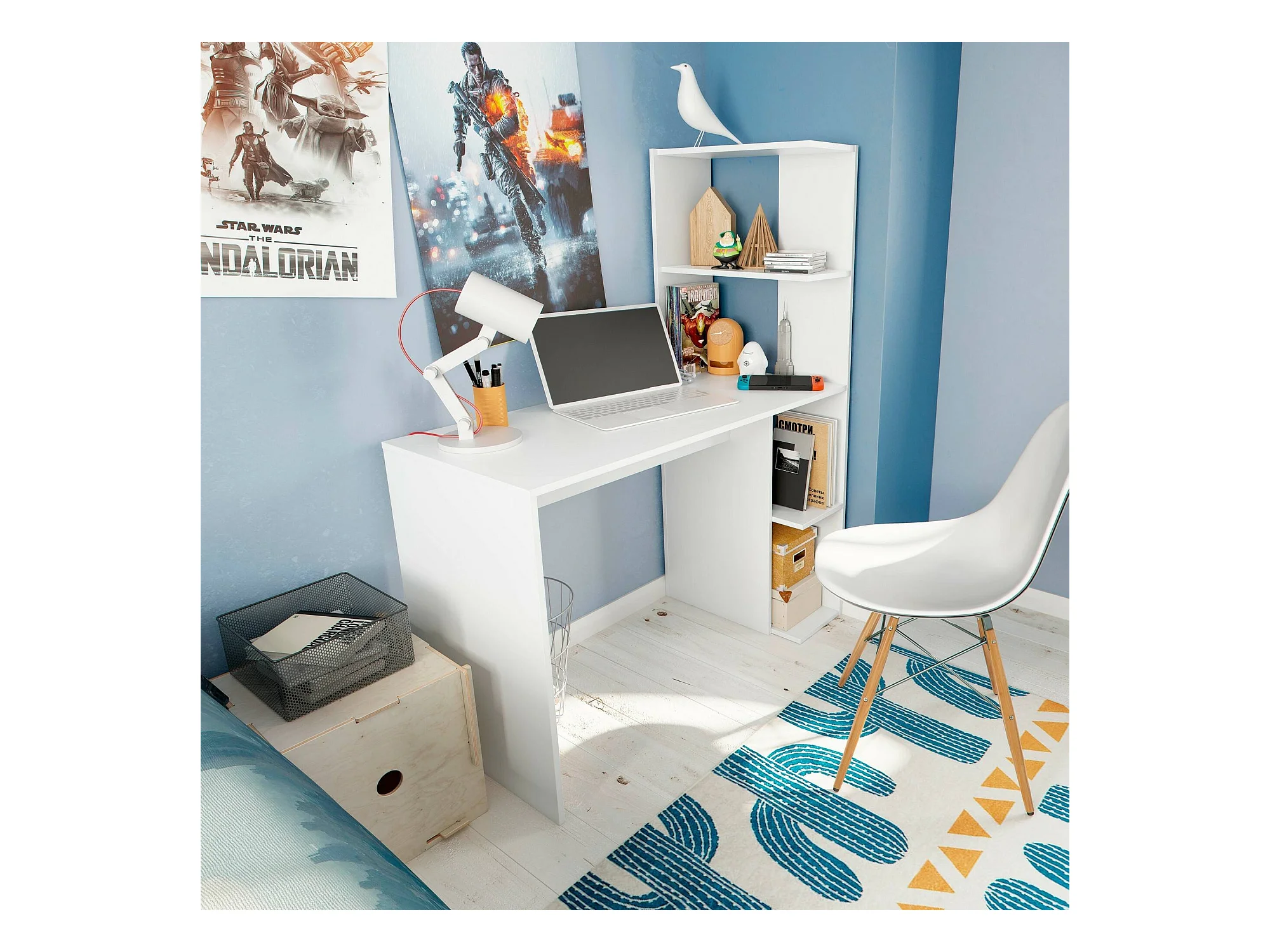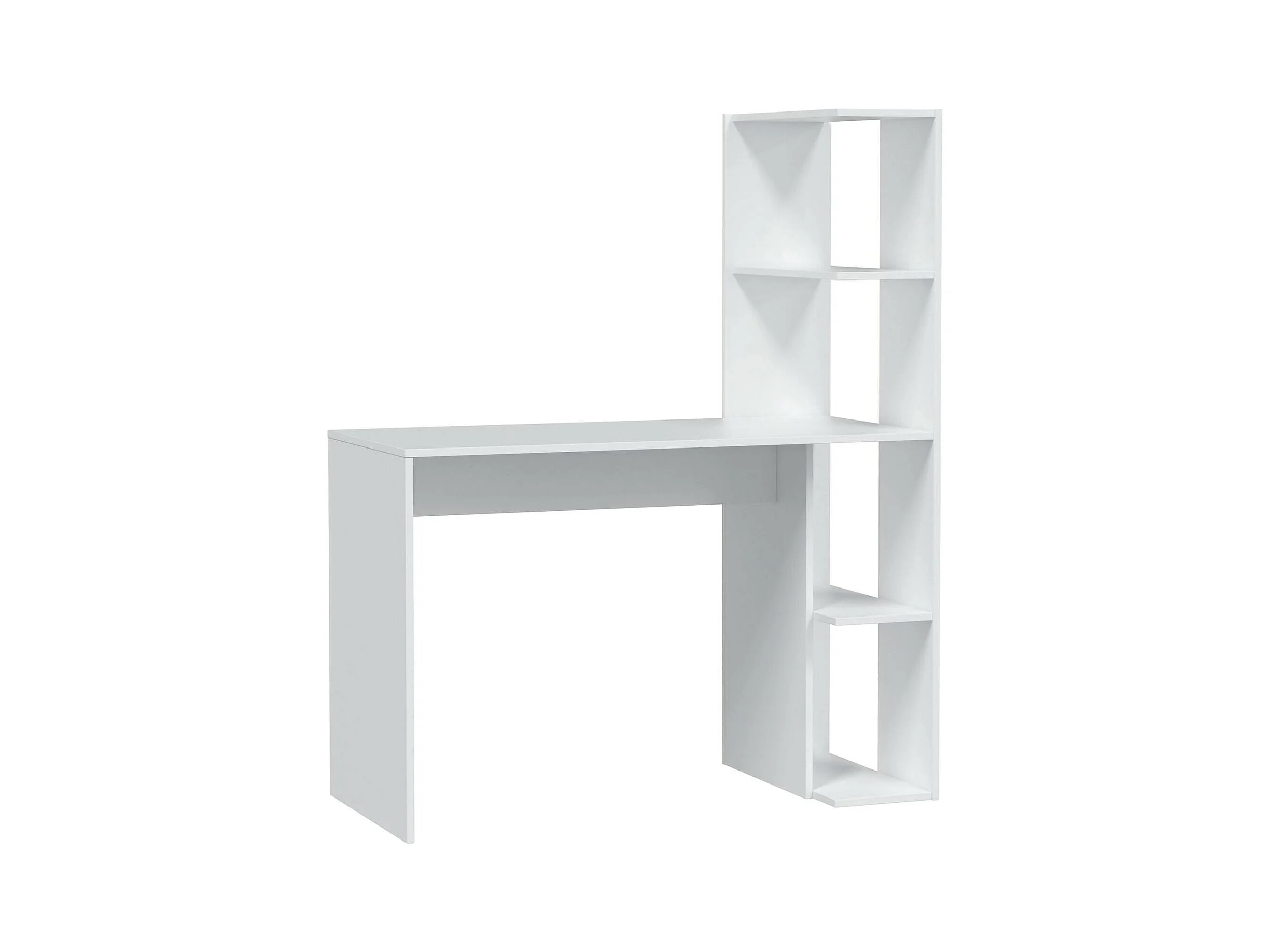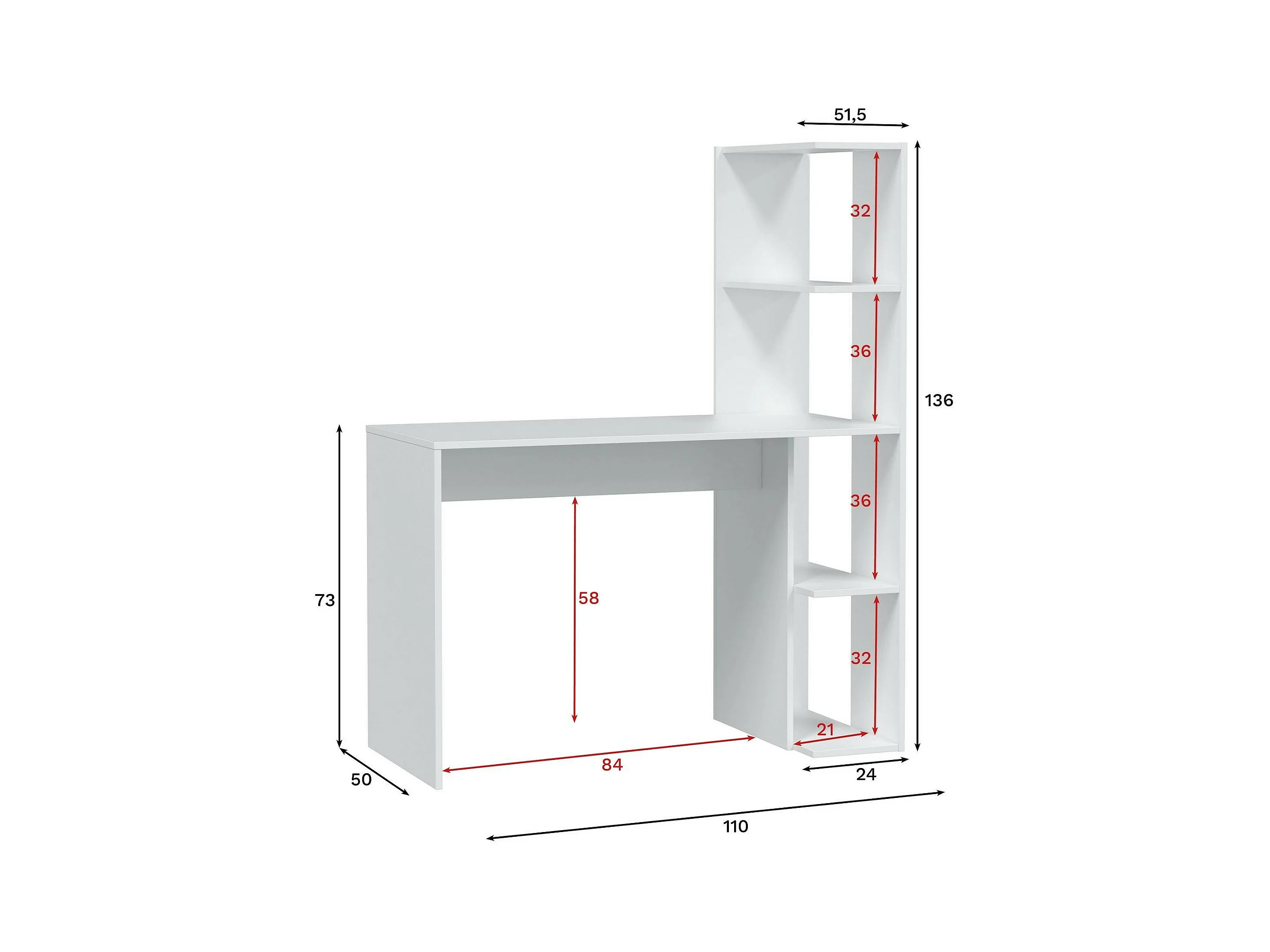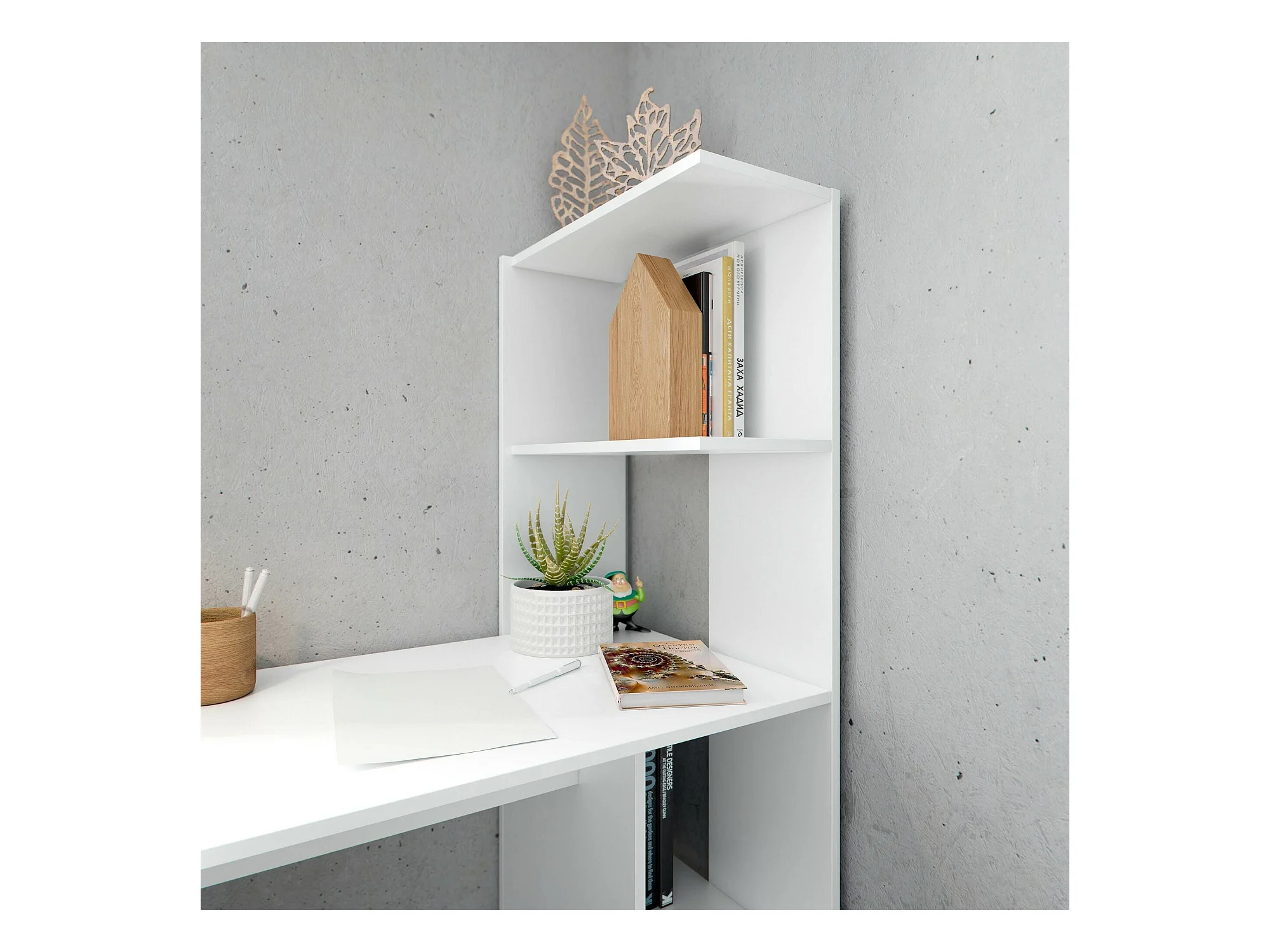 Dlup Bureau, Lineair bureau met boekenkast, Ruimtebesparende multifunctionele kantoortafel, 110x50h136 cm, Wit