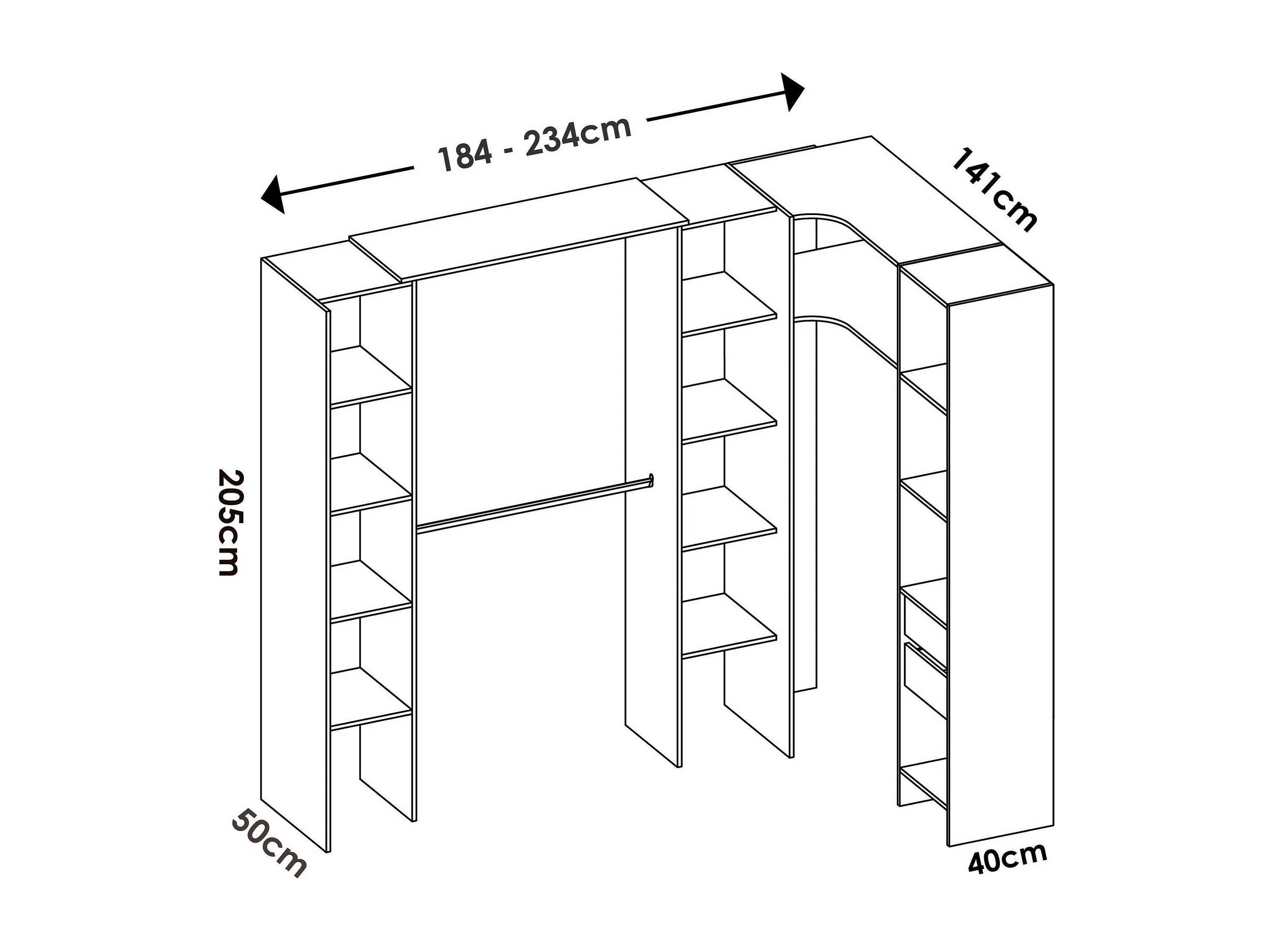 Dmacintyr grote kledingkast, Slaapkamermeubilair, Inloopkast, Kledingkast, 234x141 h205 cm, Eiken