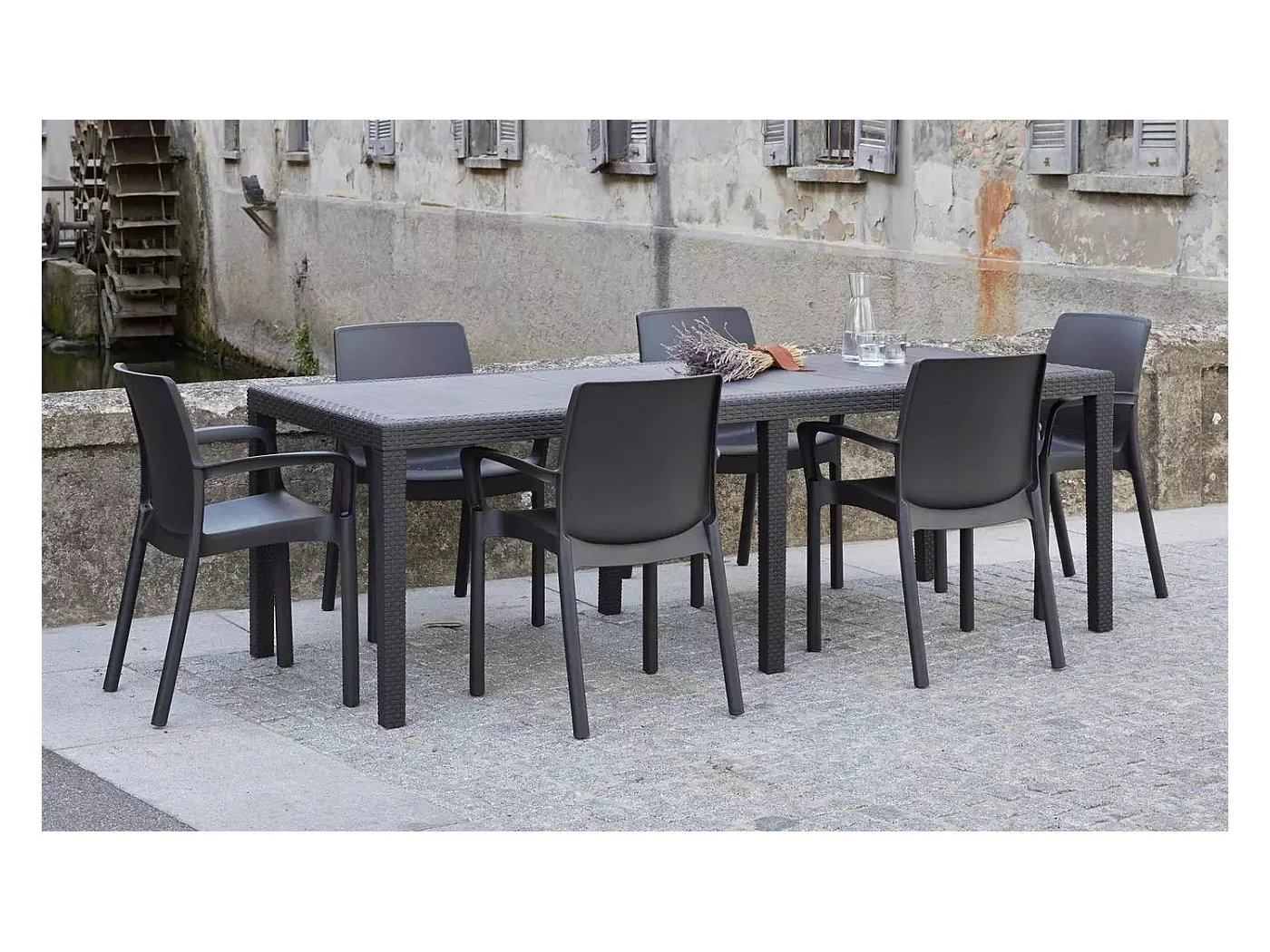 Dmachac buitentafel, Rechthoekige eettafel, Multifunctionele tuintafel met rotaneffect, 100% Made in Italy, 150x90h72 cm, Antraciet