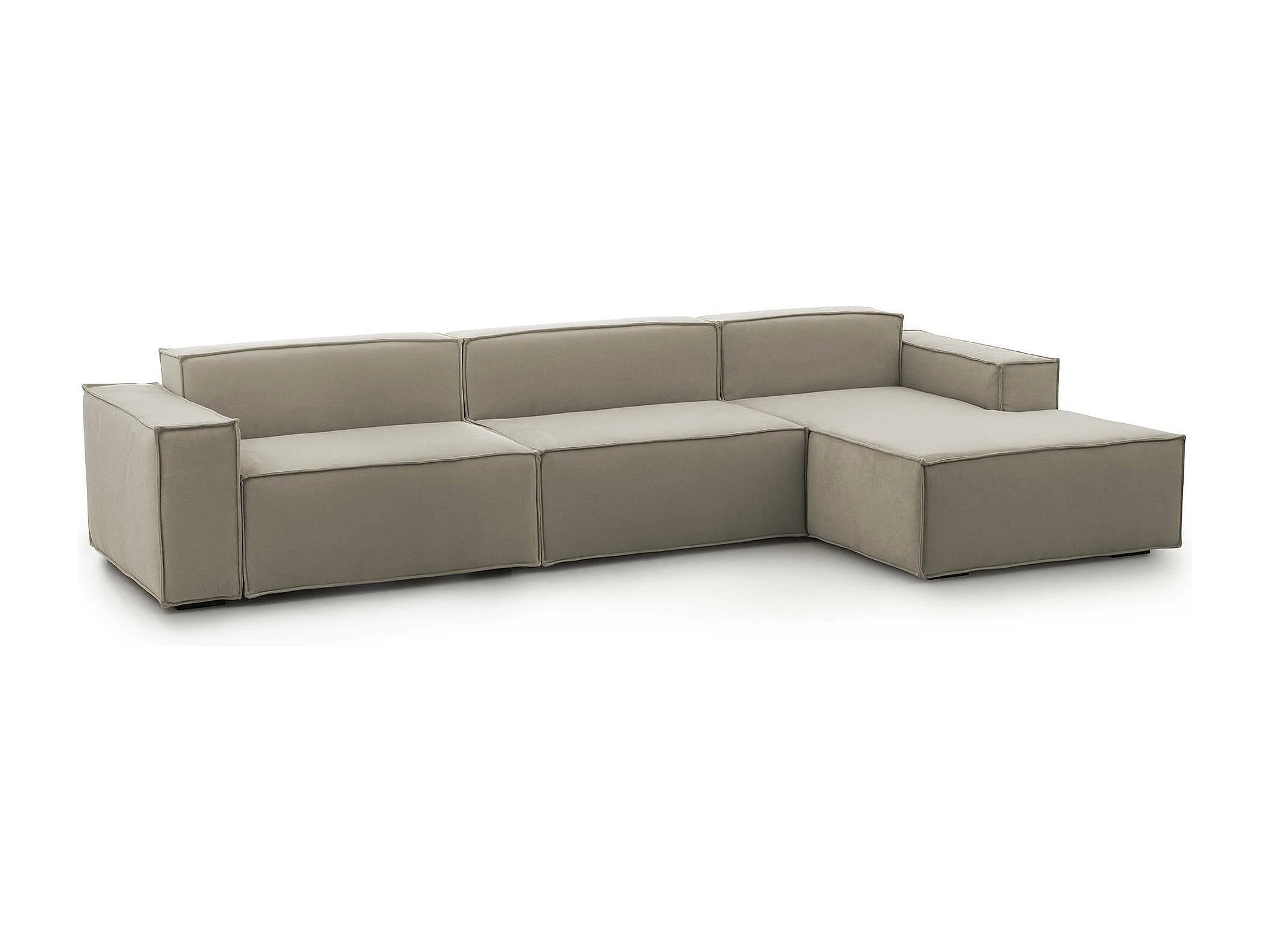 Dmaiol vaste bank, 4-zits modulaire bank met rechterschiereiland, 100% Made in Italy, Moderne stoffen bank, 340x170h70 cm, Taupe