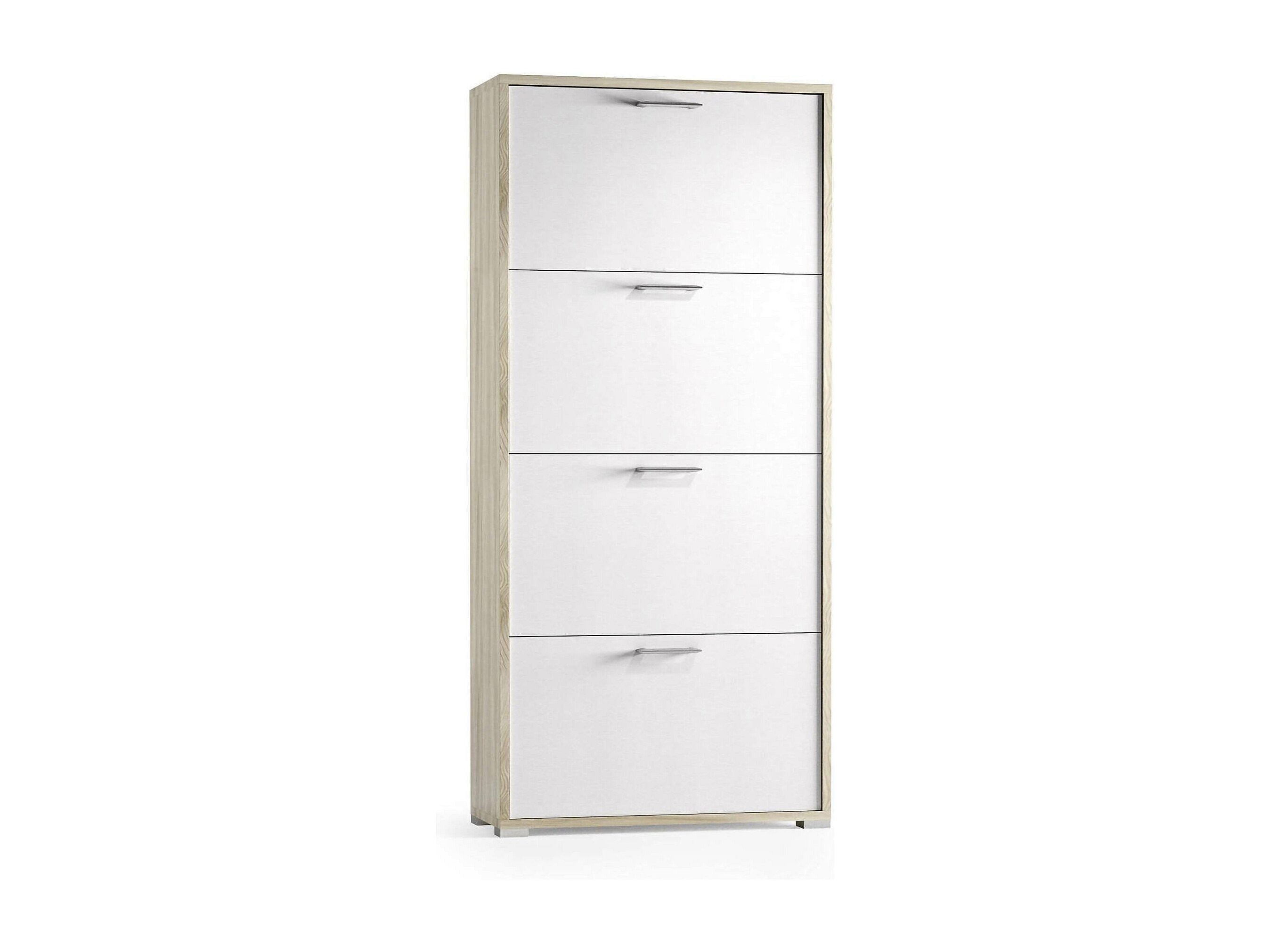 Dmodic schoenenrek, entree schoenenrek met 4 deuren, ruimtebesparende schoenenkast, 105x24h112 cm, Wit en Eiken