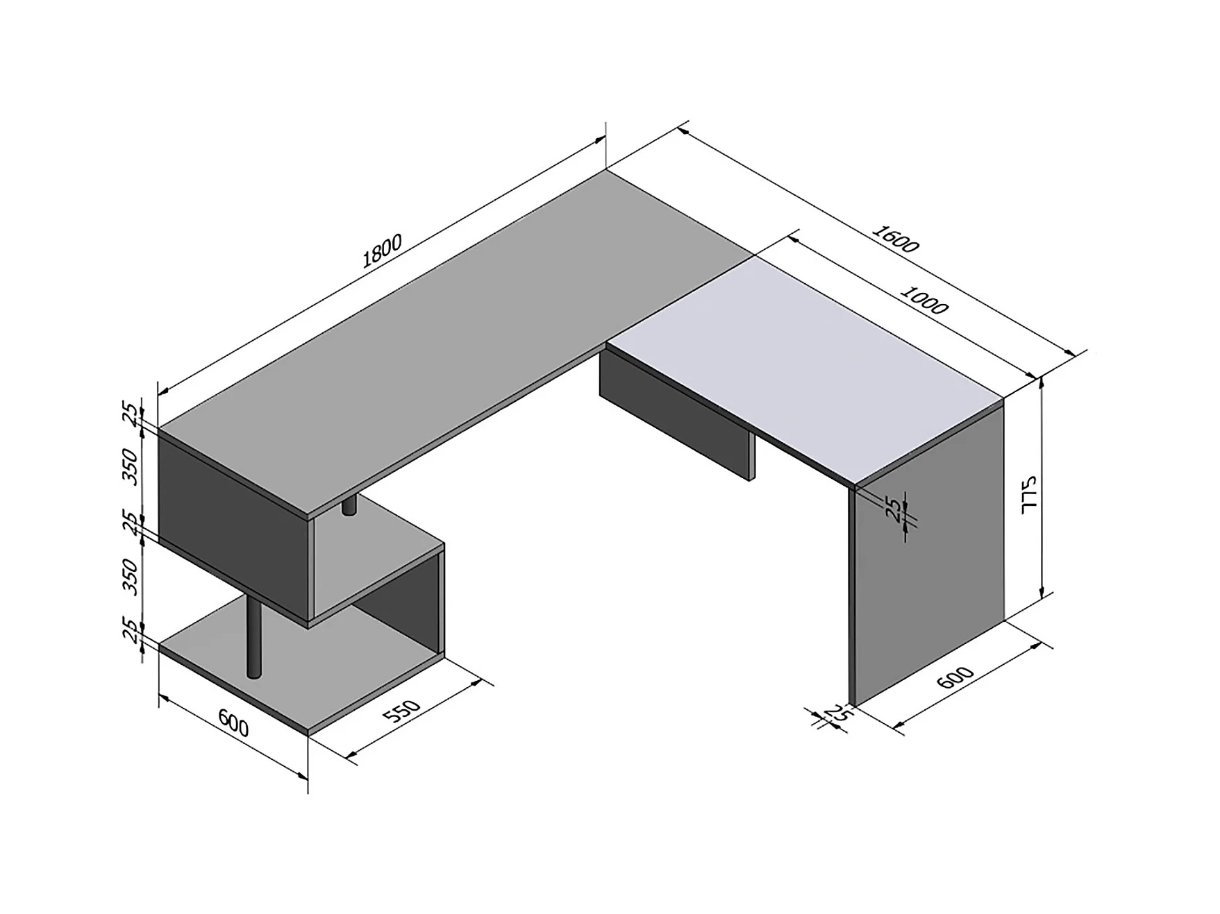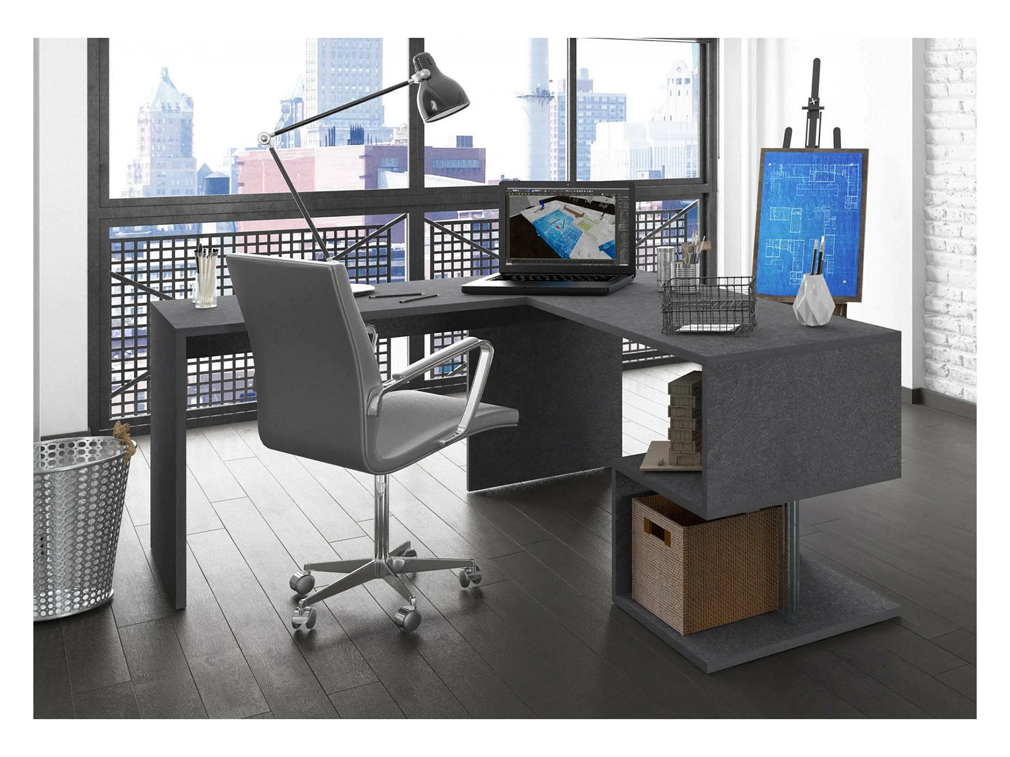 Dmassaro bureau, Hoek PC-bureau, Multifunctionele kantoortafel, Ruimtebesparend bureau met meerdere posities, 100% Made in Italy, 160x60h78 cm, Leisteen