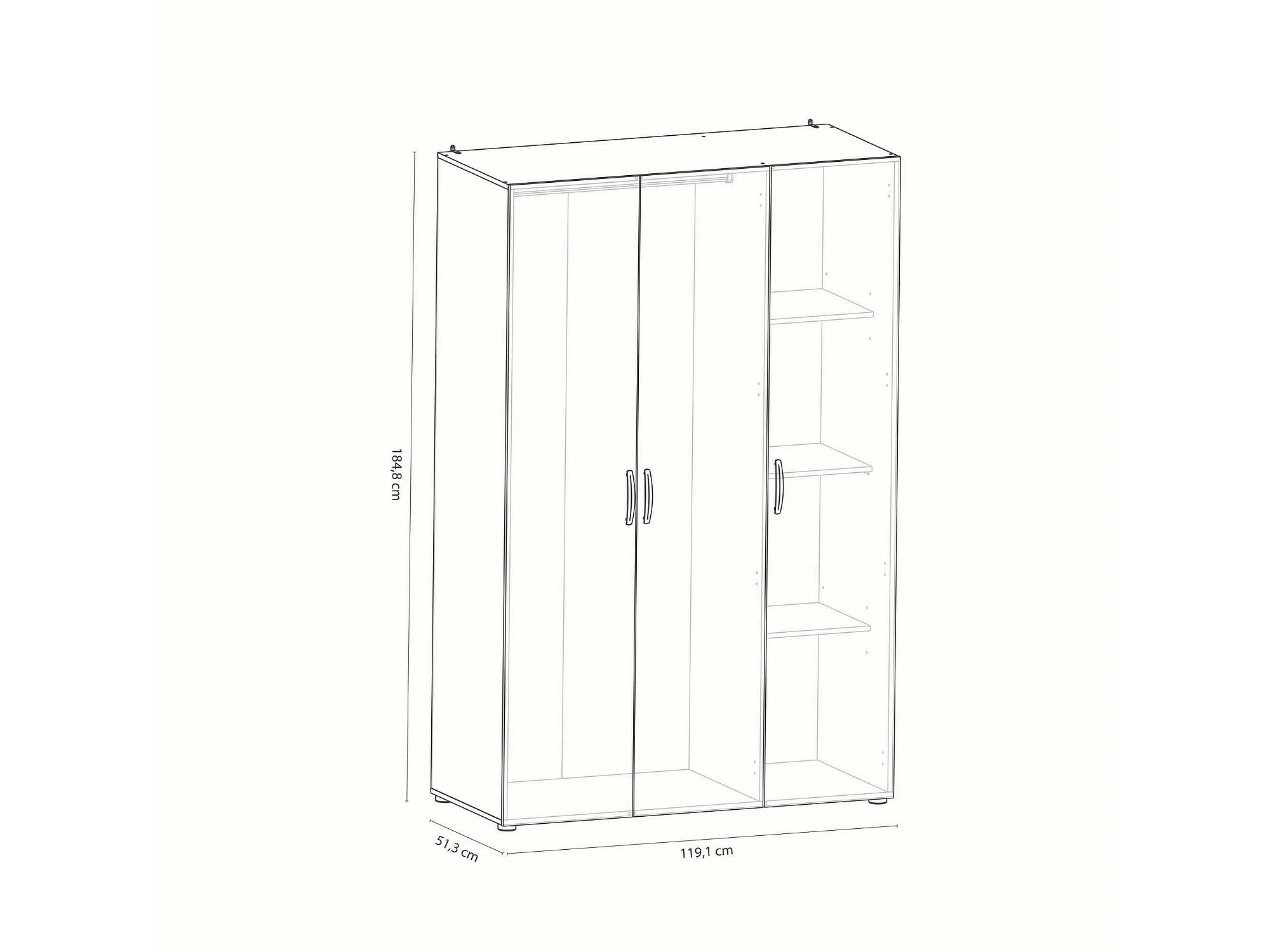 Dmatild grote kledingkast, Slaapkamermeubel, Inloopkast, Kledingkast, 119x51 h185 cm, Eiken en mat wit