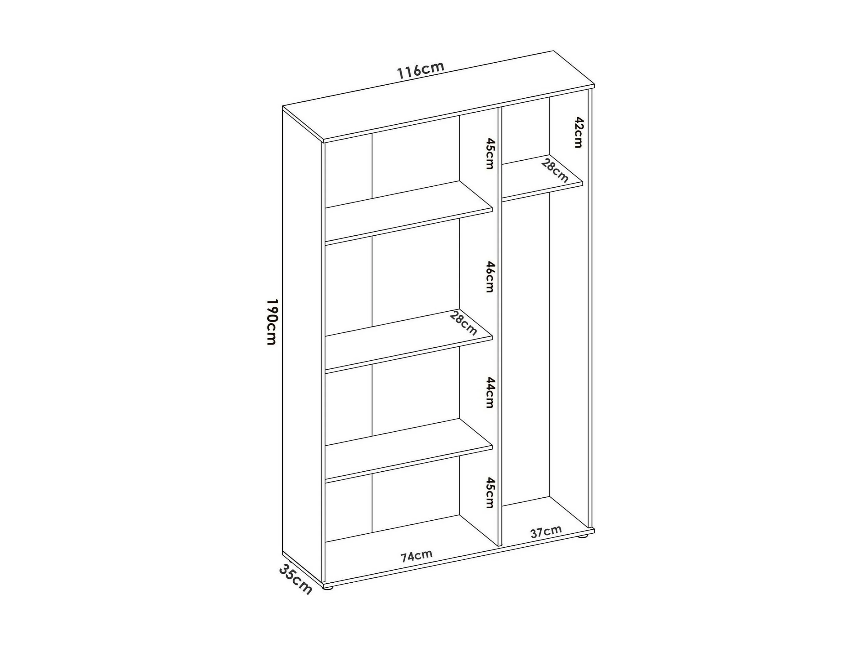 Dmeli multifunctionele kledingkast, multifunctionele bezemkast, 3-deurskast, 116x35h190 cm, Wit