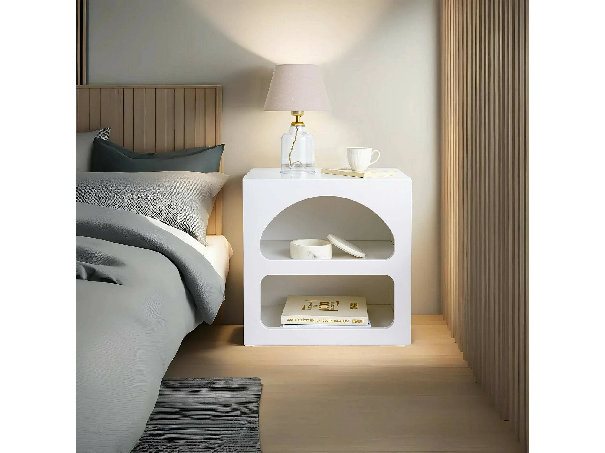 Dmengucc nachtkastje, Laag dressoir, Nachtkastje, Bedplank, 50x38h50 cm, Wit