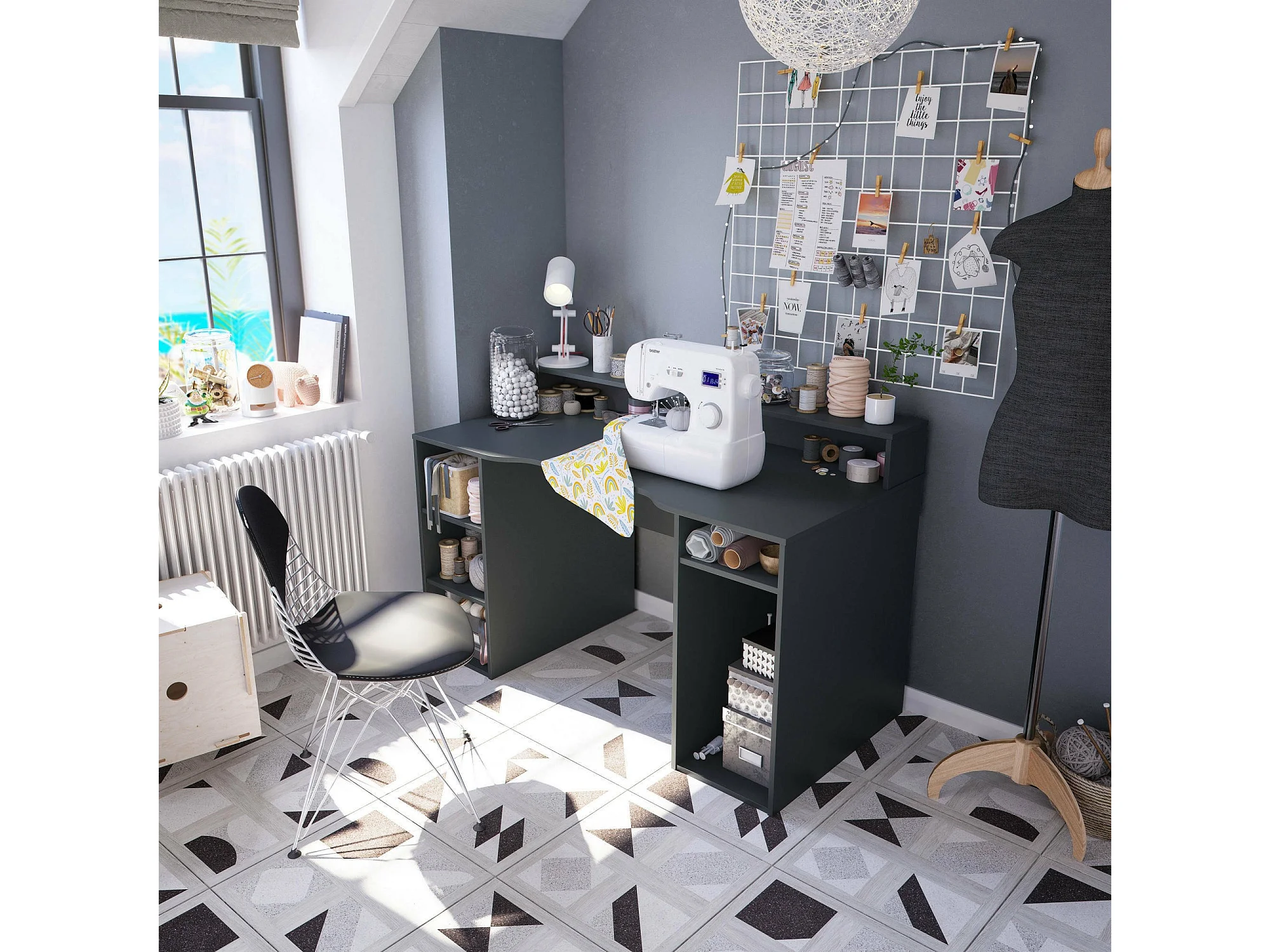 Dmora Bureau Phoenix 67x136x88h cm Antraciet Zwart, Modulair 5 Planken, Structuurmateriaal in Gefineerd Hout