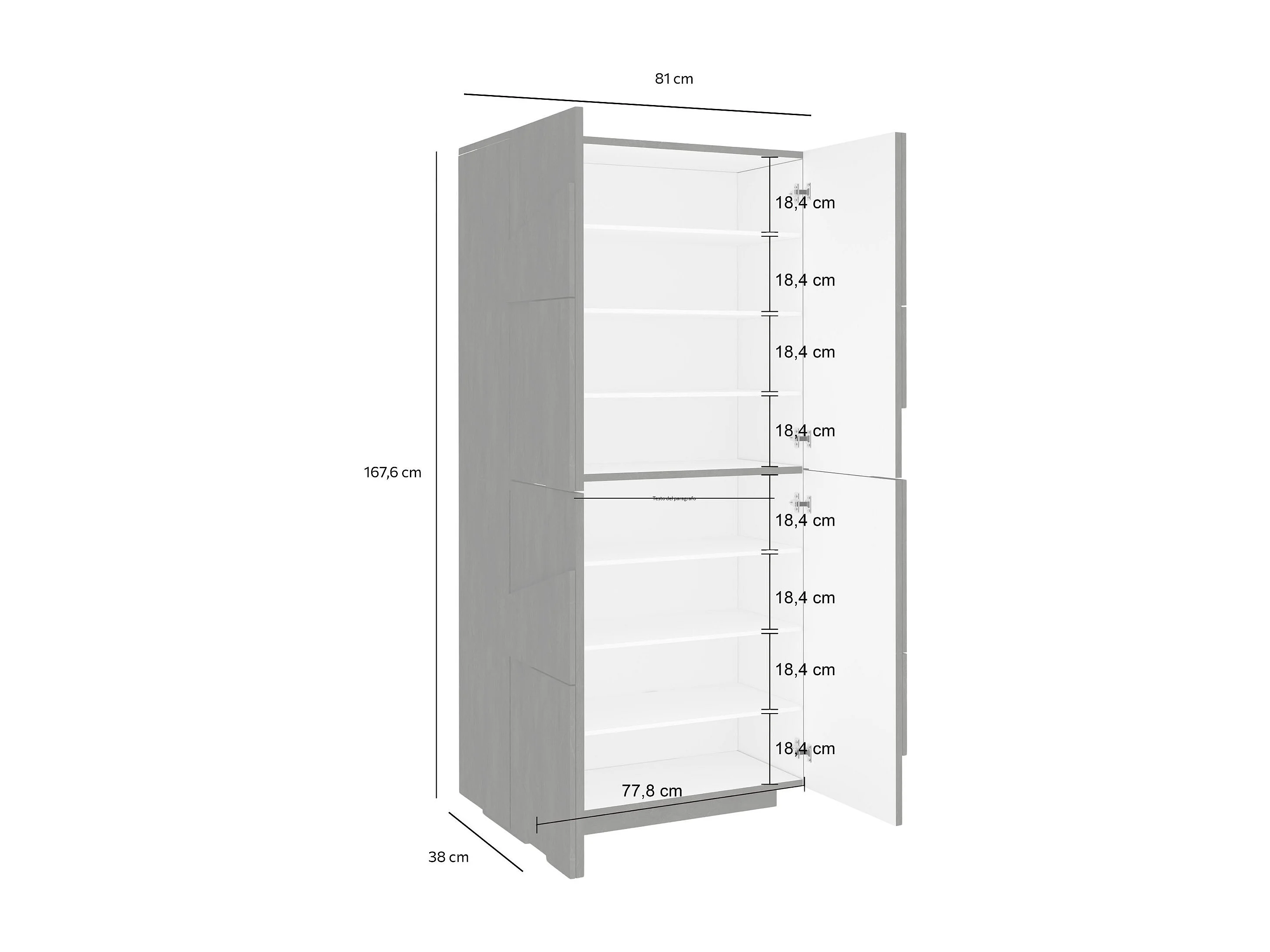 Dmora Schoenenkast Orfeo 38x81x167h cm Leigrijs 7 Planken 32 Paar, Schoenenmeubel 4 Deuren Made in Italy