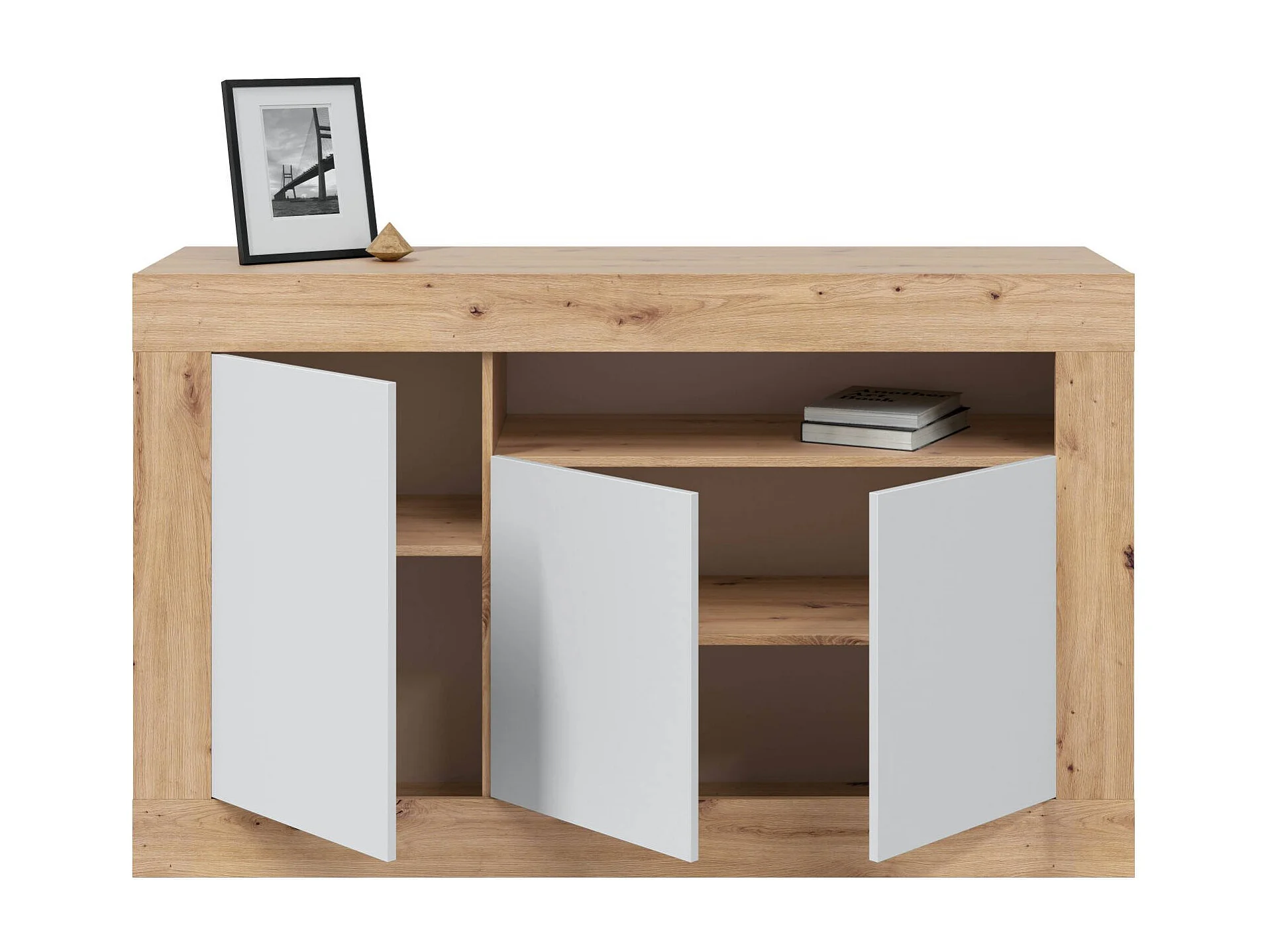 Dmora Thornton Dressoir 42x144x87h cm Bruin Eiken Knopen, 3 Planken 5 Vlakken, Dressoir 3 Deuren