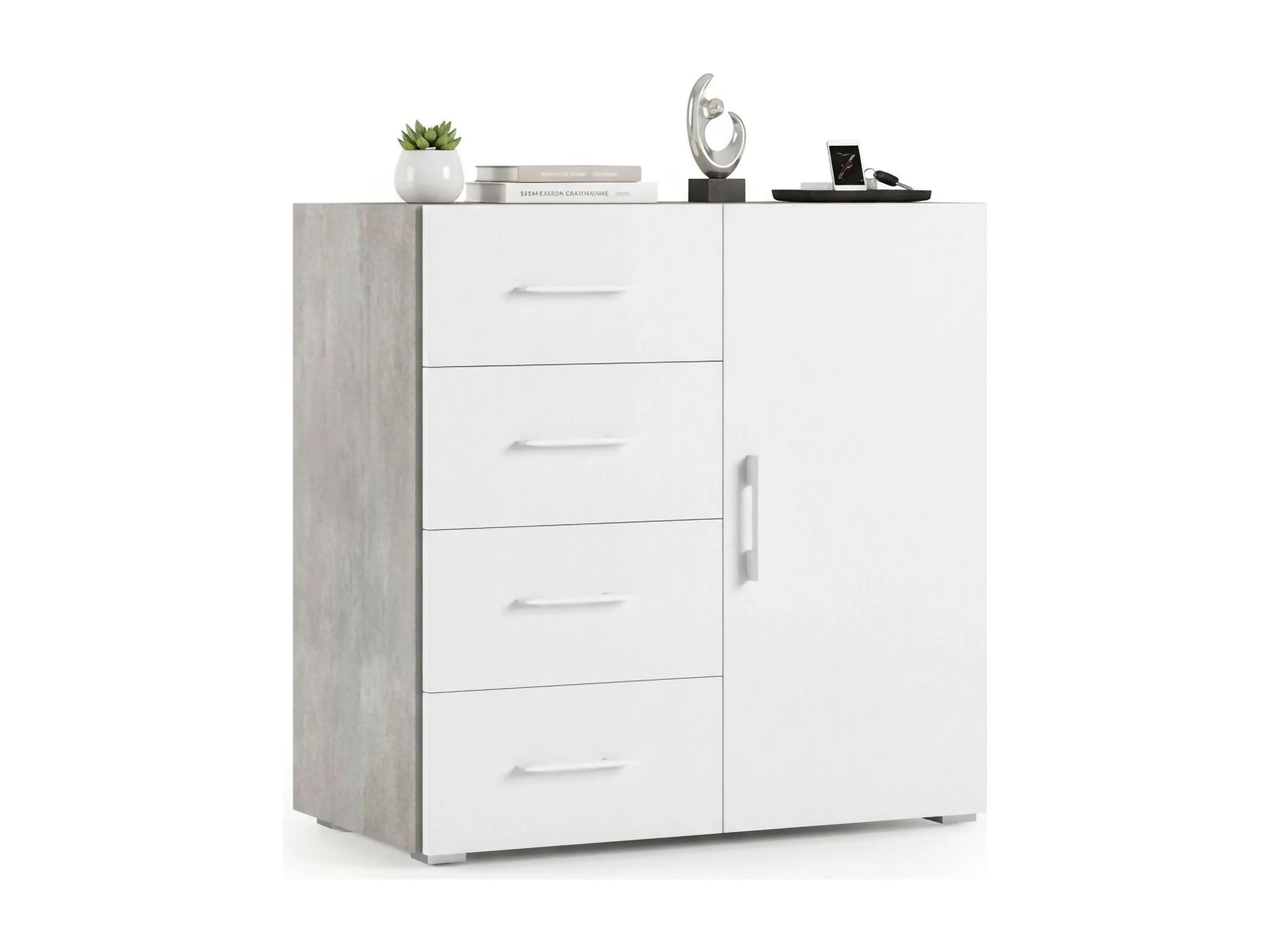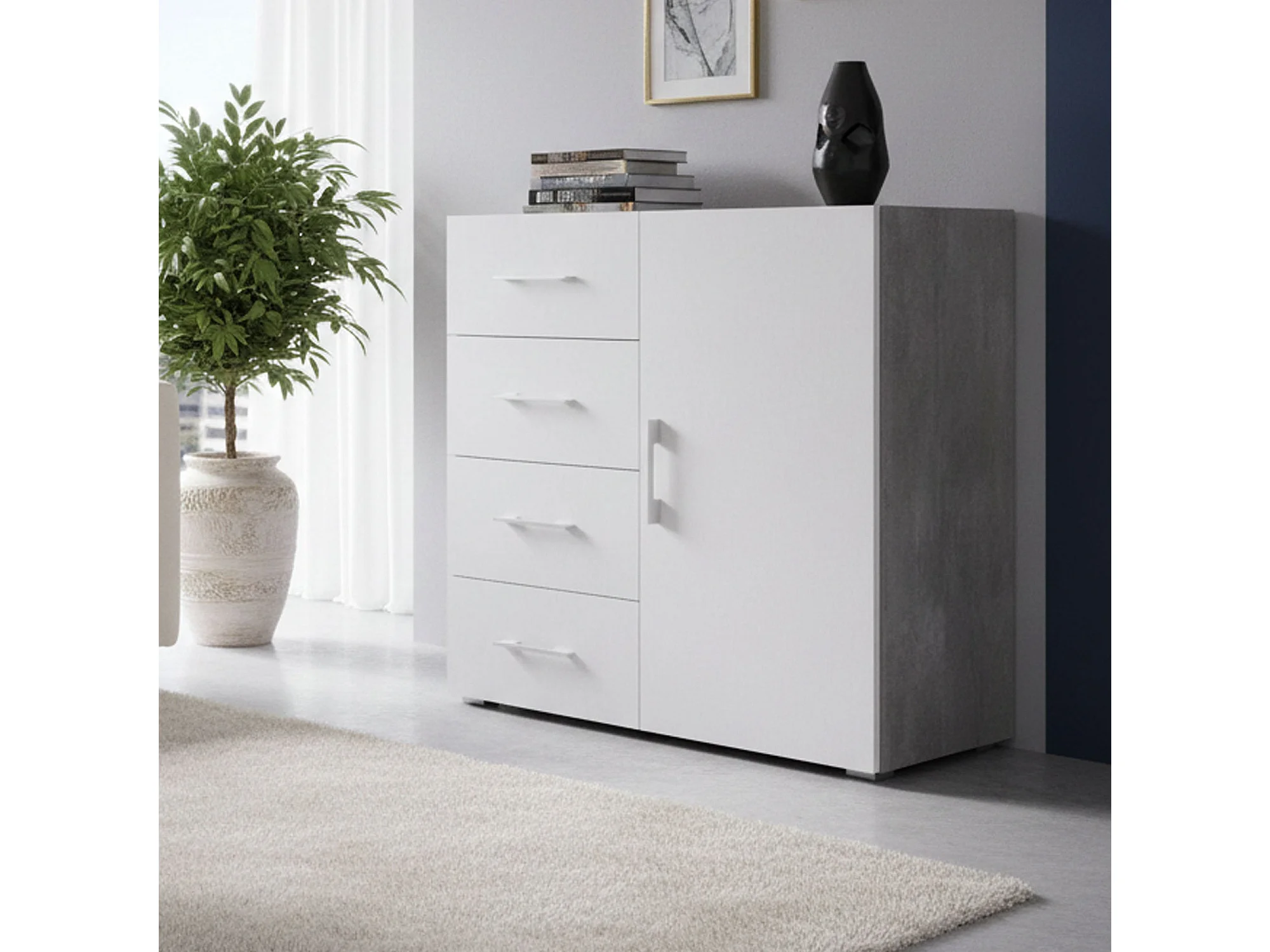 Dnag dressoir, Buffetkast met 1 deur en 4 laden, Woonkamerdressoir, Multifunctionele kast met planken, 100% Made in Italy, 90x41h87 cm, Wit en Cement