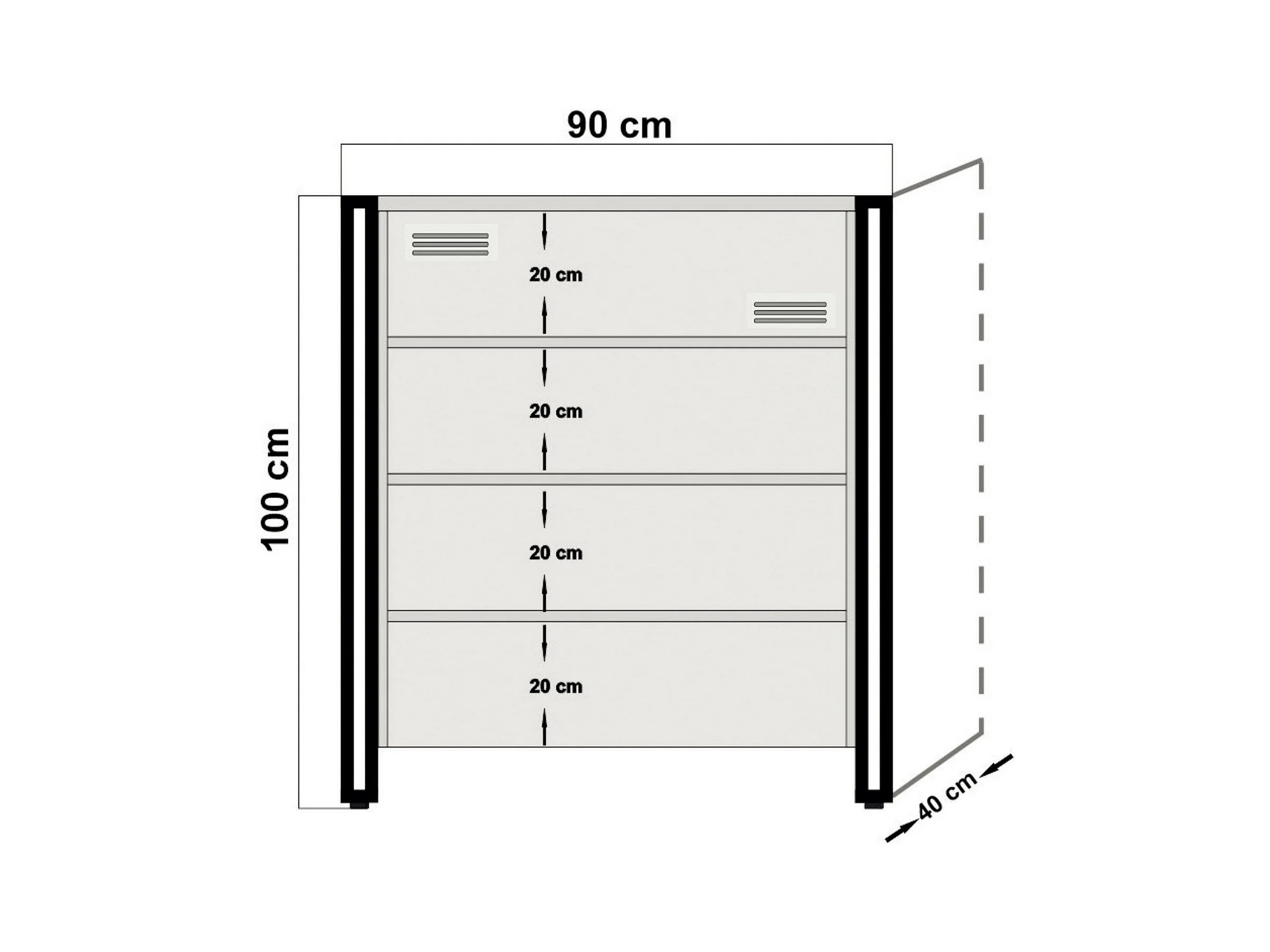 Ladekast met 4 lades in spaanplaat naturel en zwart