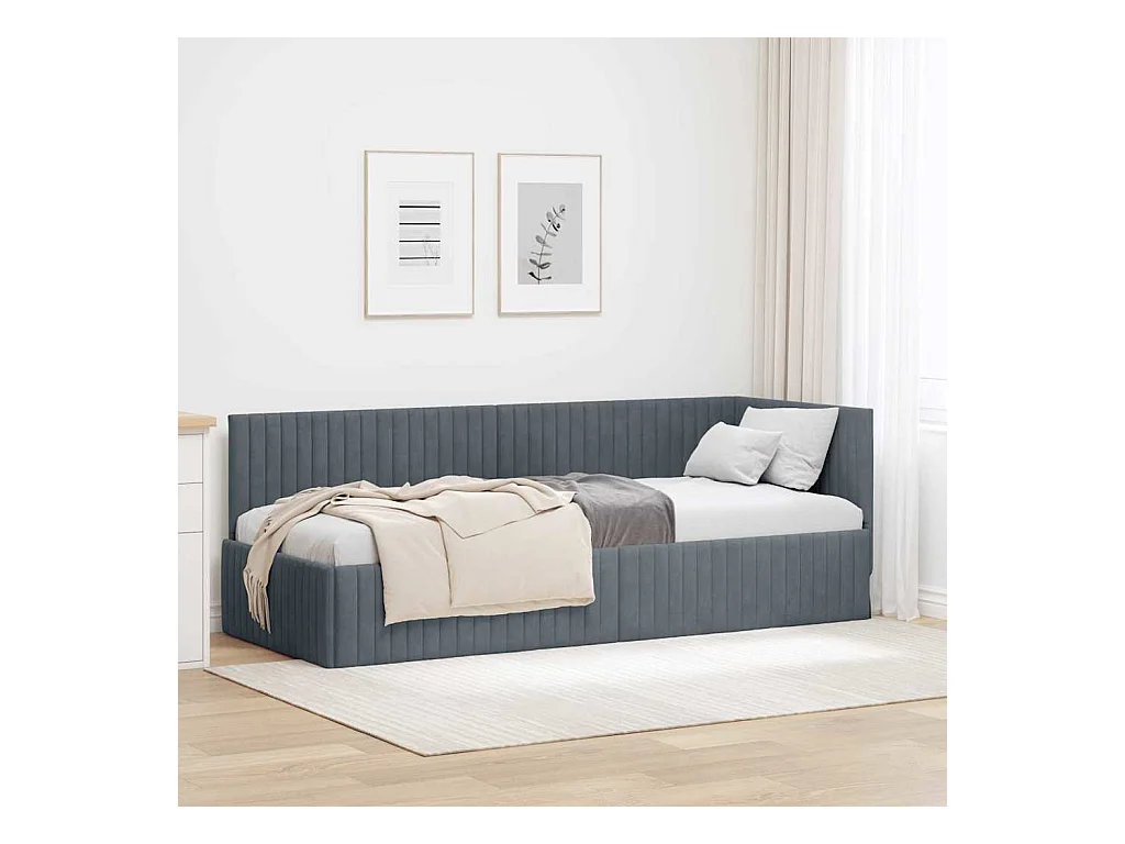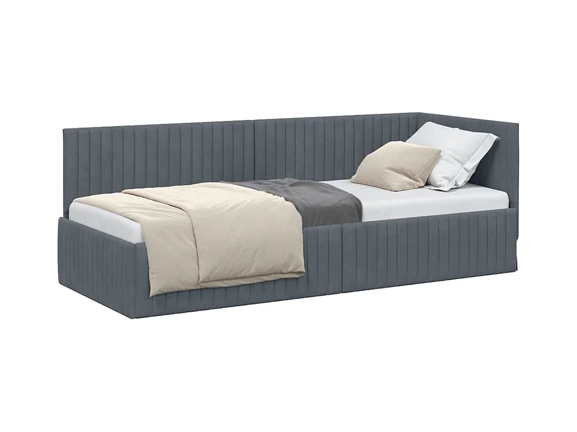 Donkergrijs hoekbedframe 80 x 200 cm fluweel