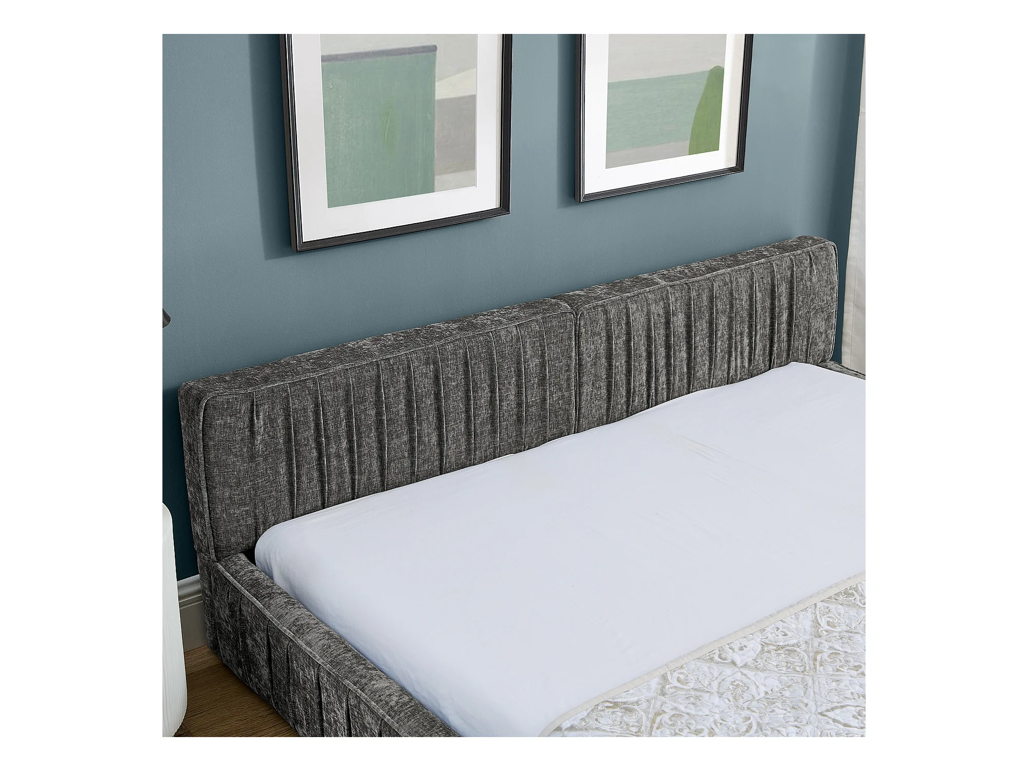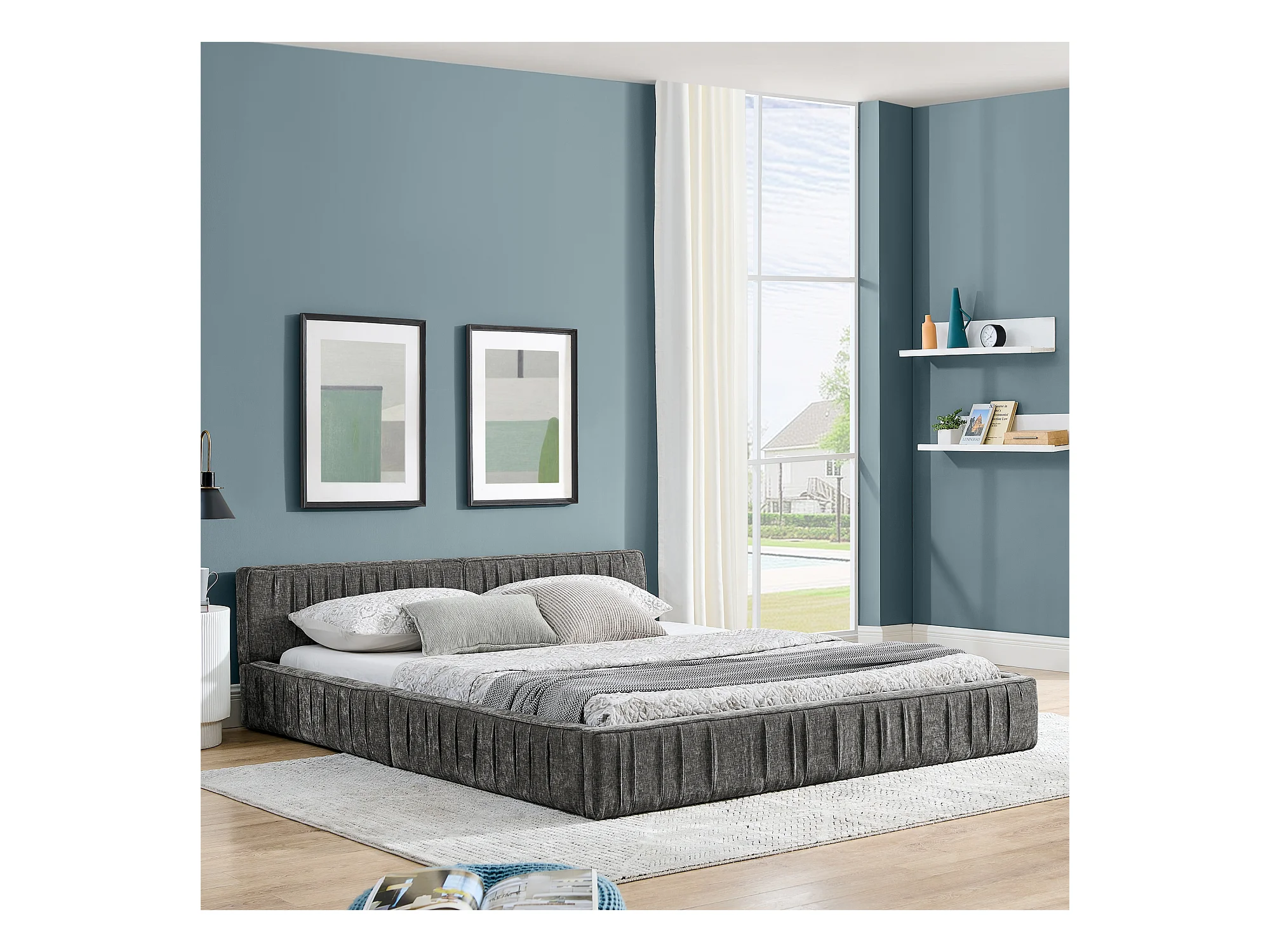 Donkergrijs tweepersoonsbed 160x200cm, lattenbodem, chenillestof (zonder matras)