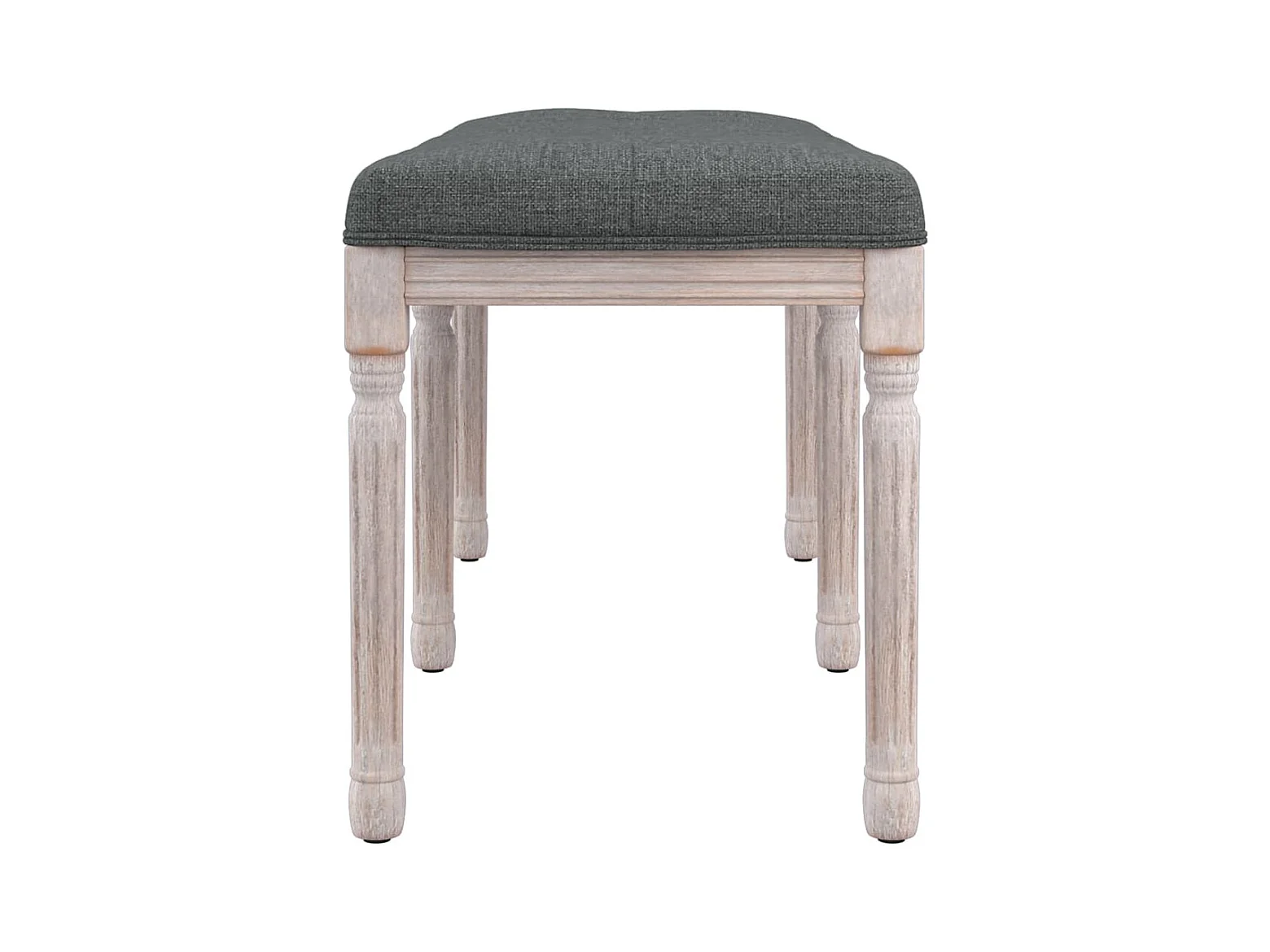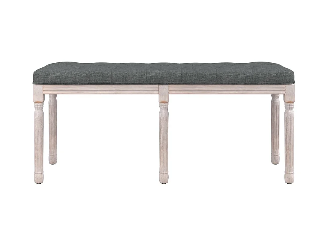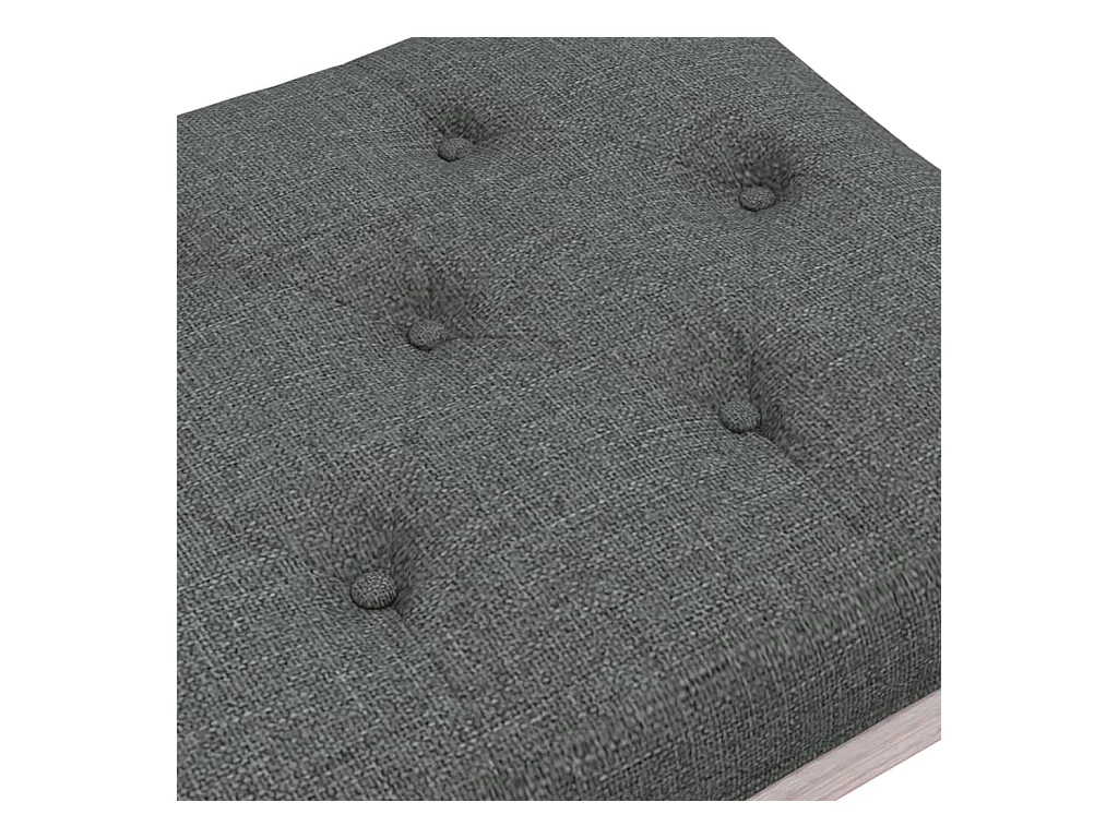 Schoenenbank met opbergruimte, gevoerde zitting, houten poten, grijze linnen stof (115x40x48cm)