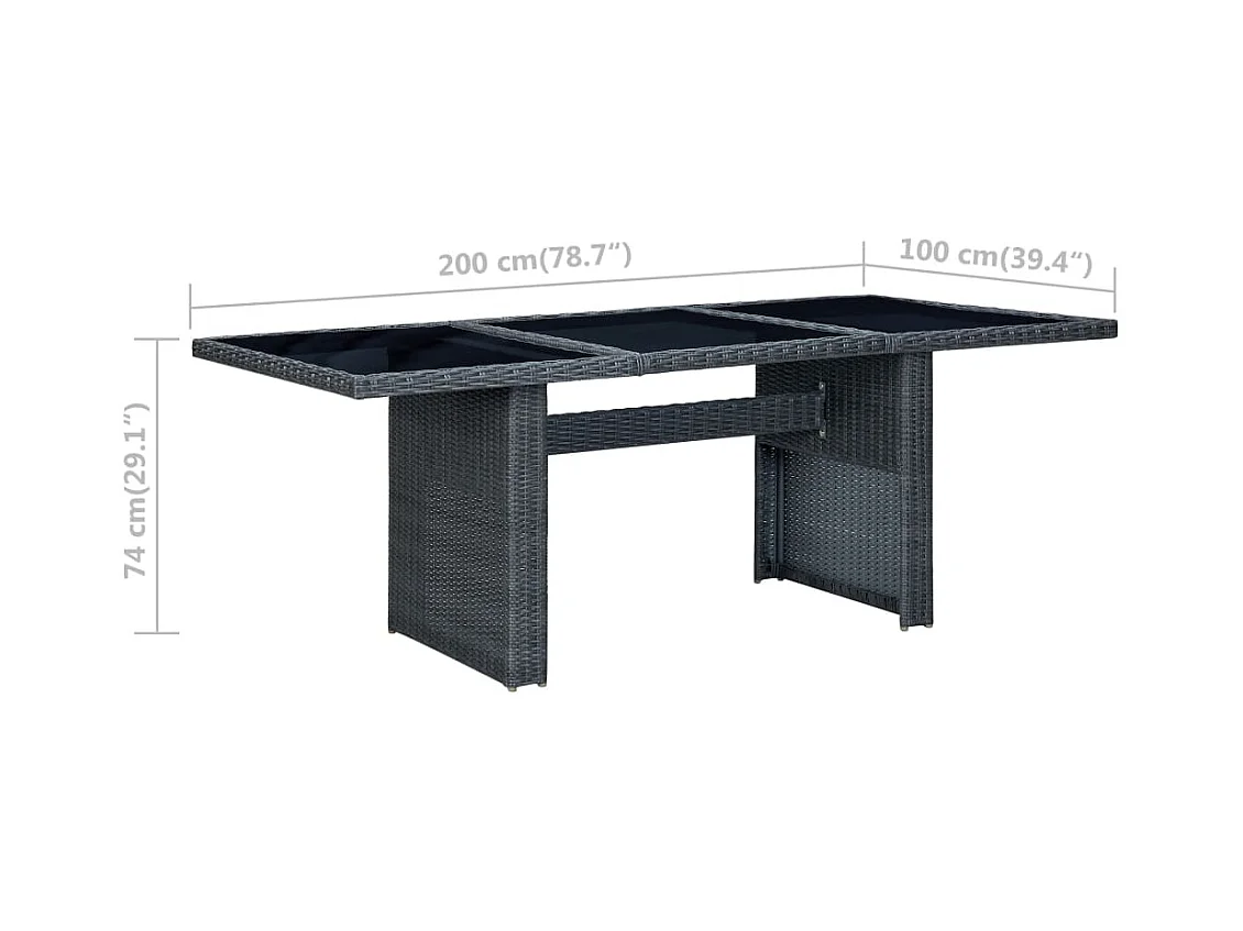 Antraciet tuintafel 200 x 100 x 73 cm polyrotan