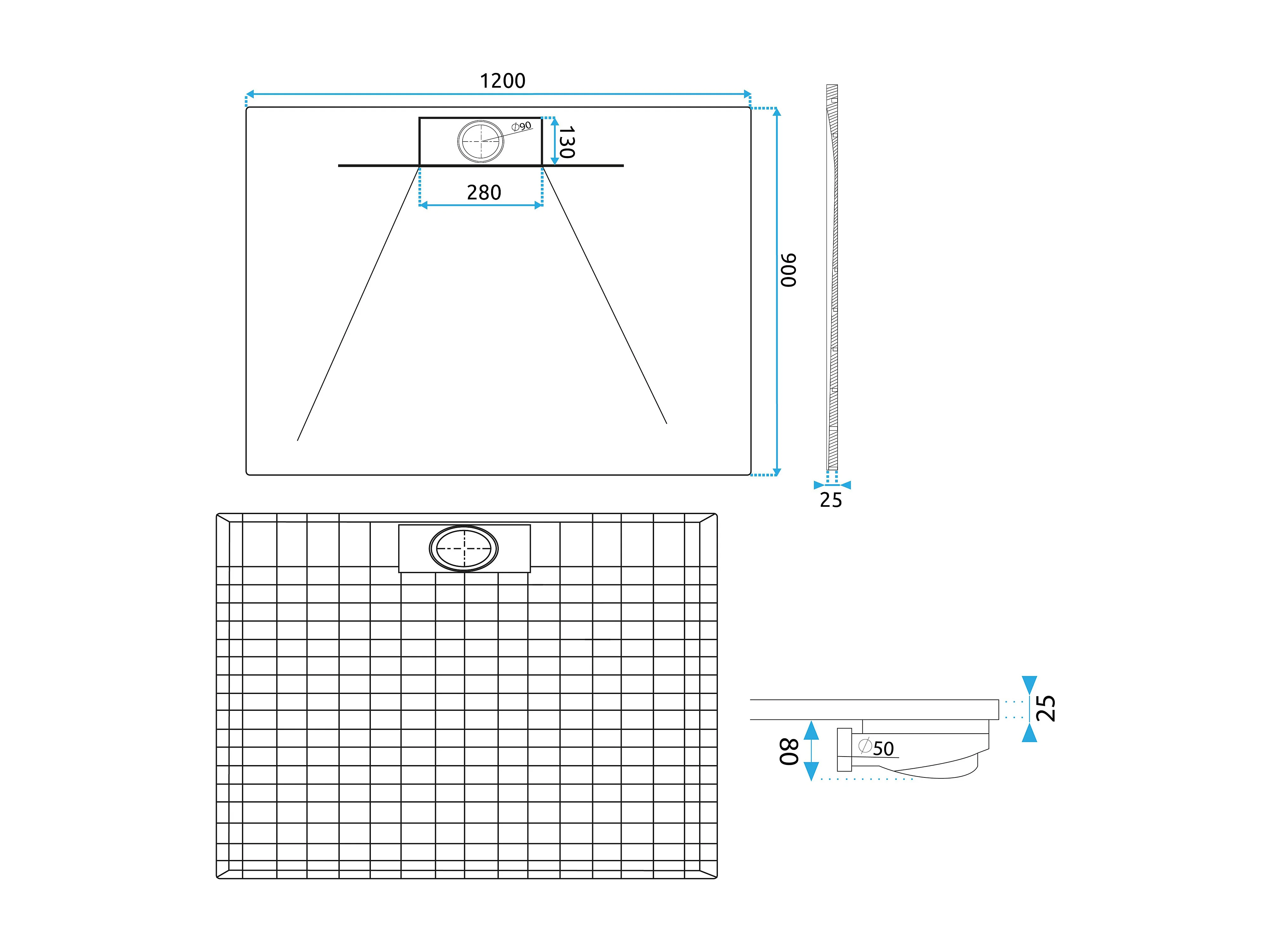 EMKE Douchebak plat antislip SMC douchebak om in te korten, 120x90 cm | Zwart