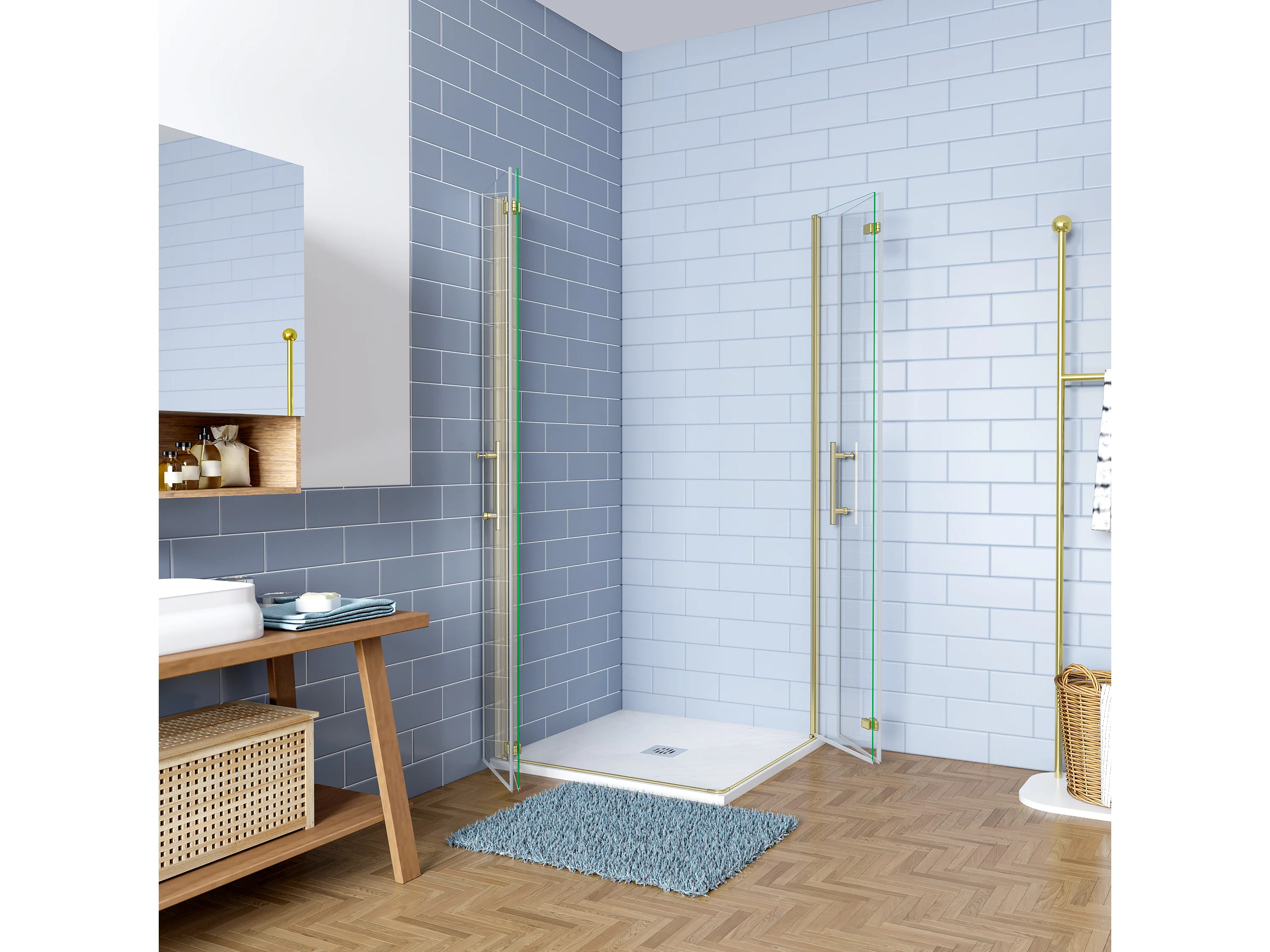 Douchecabine 70x90x195cm Opvouwbare 6mm NANO Easyclean veiligheidsglas goud aluminium profiel