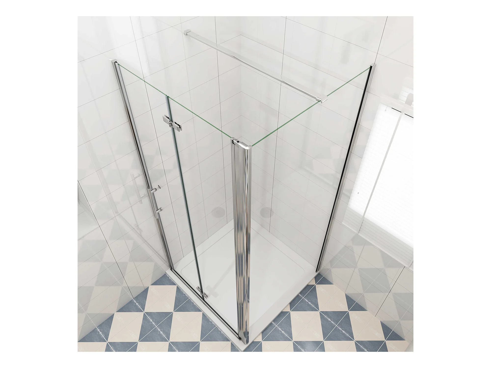 Douchecabine 85x80x195cm, draaideur+ vouwdeur (L-vorm),NANO EasyClean veiligheidsglas,N-vorm 90cm Stabilisatiestang