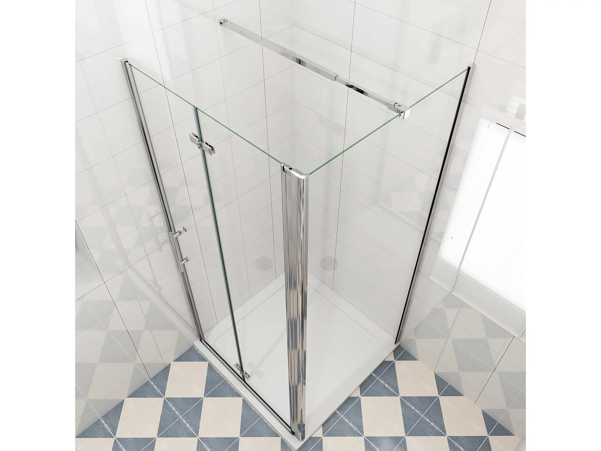 Douchecabine 85x80x195cm, draaideur+ vouwdeur (L-vorm),NANO EasyClean veiligheidsglas,stabilisatiestang 73-120cm