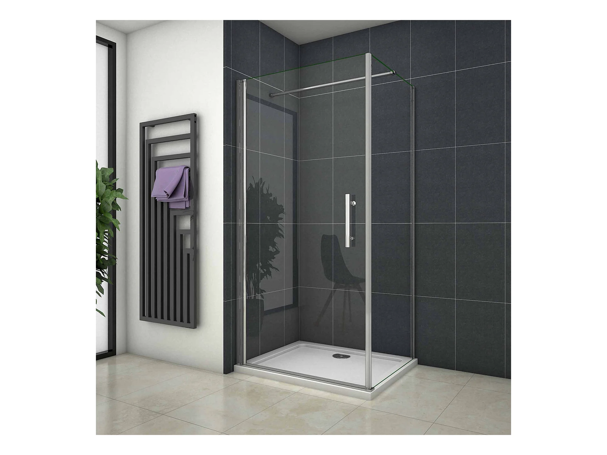 Douchecabine 80x100x185 cm,draaideur+zijwand , 6mm NANO EasyClean veiligheidsglas,chroom,90cm Stabilisatiestang