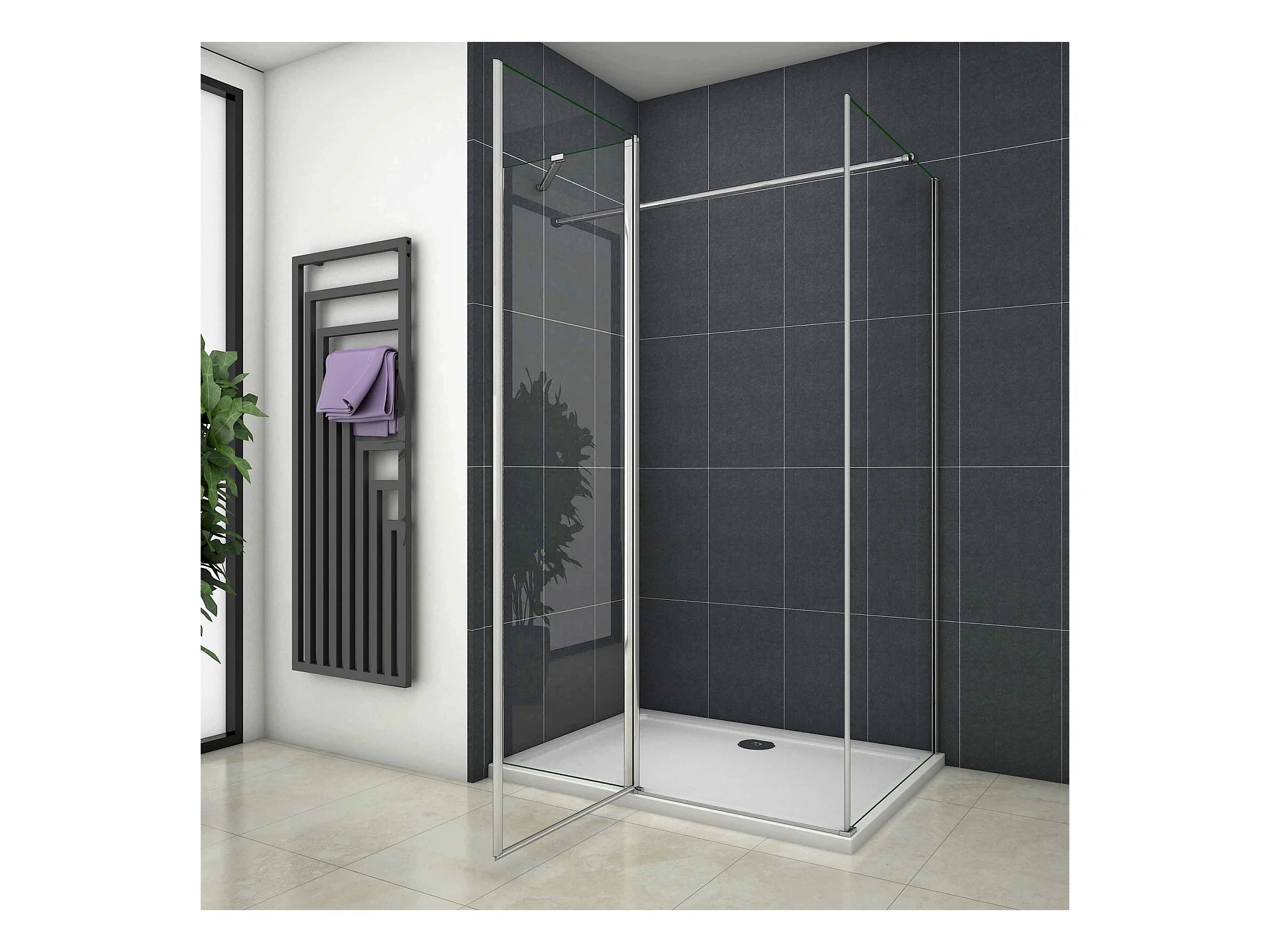 Douchecabine 100x100x185 cm,draaideur+zijwand , 6mm NANO EasyClean veiligheidsglas,chroom,140cm Stabilisatiestang