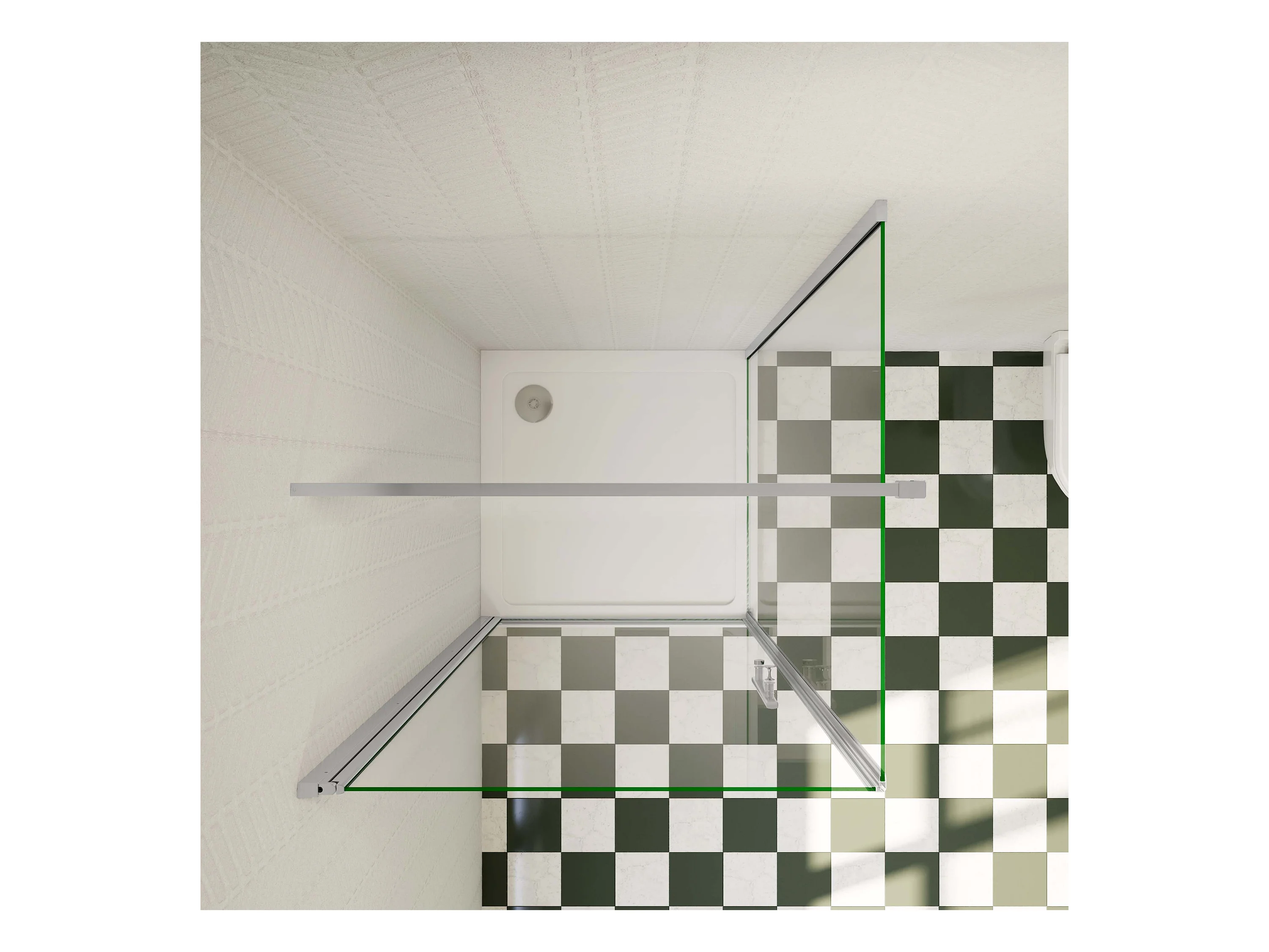 Douchecabine met vouwdeur en vaste zijwand,6mm NANO EasyClean veiligheidsglas,B:90xD:90xH:185cm,90 cm Stabilisatiestang,chroom