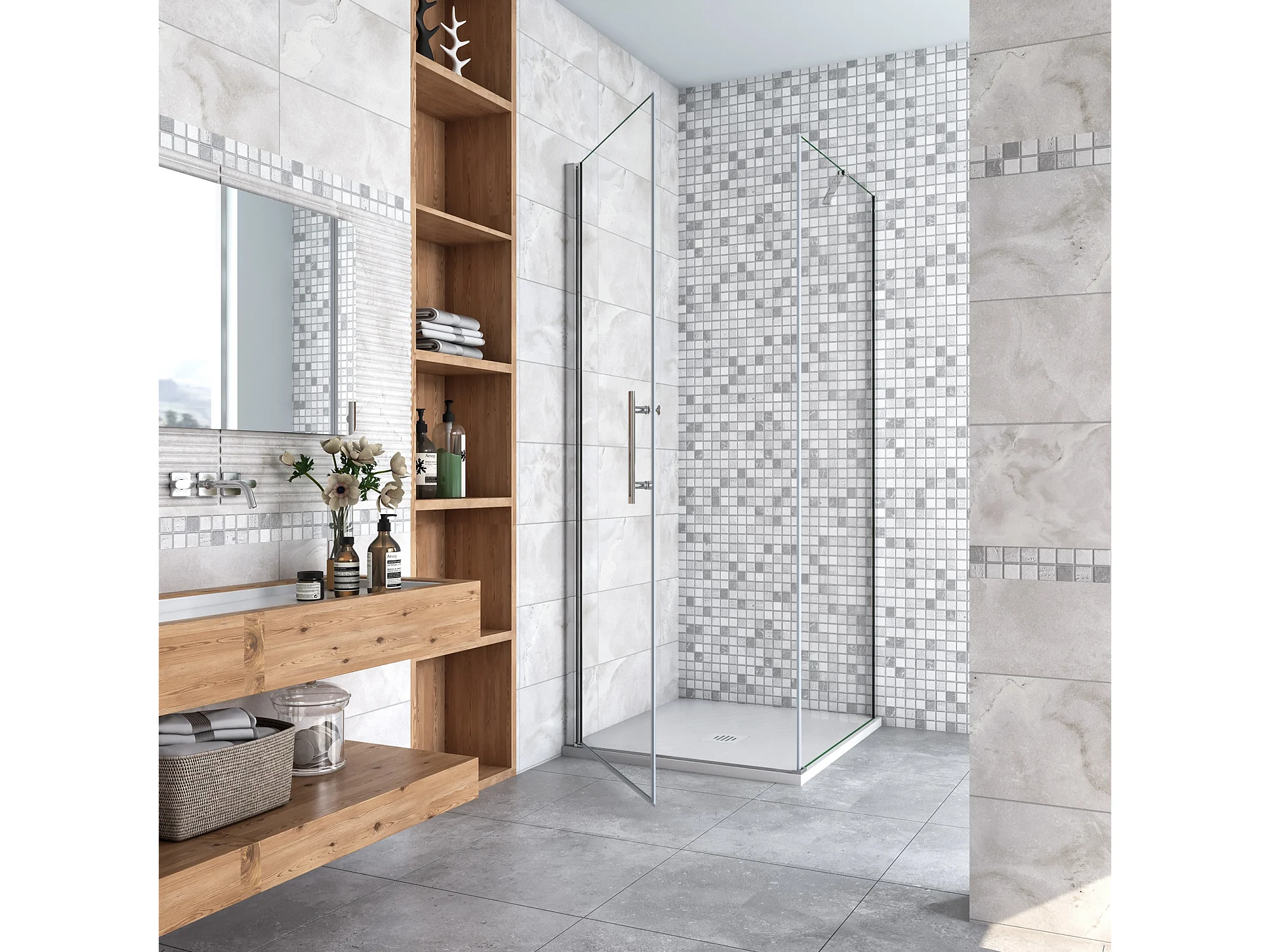 Douchecabine 90x76x185cm,draaideur+zijwand,6mm NANO EasyClean veiligheidsglas,50cm Stabilisatiestang (draaibaar),profiel van glanzend chroom.