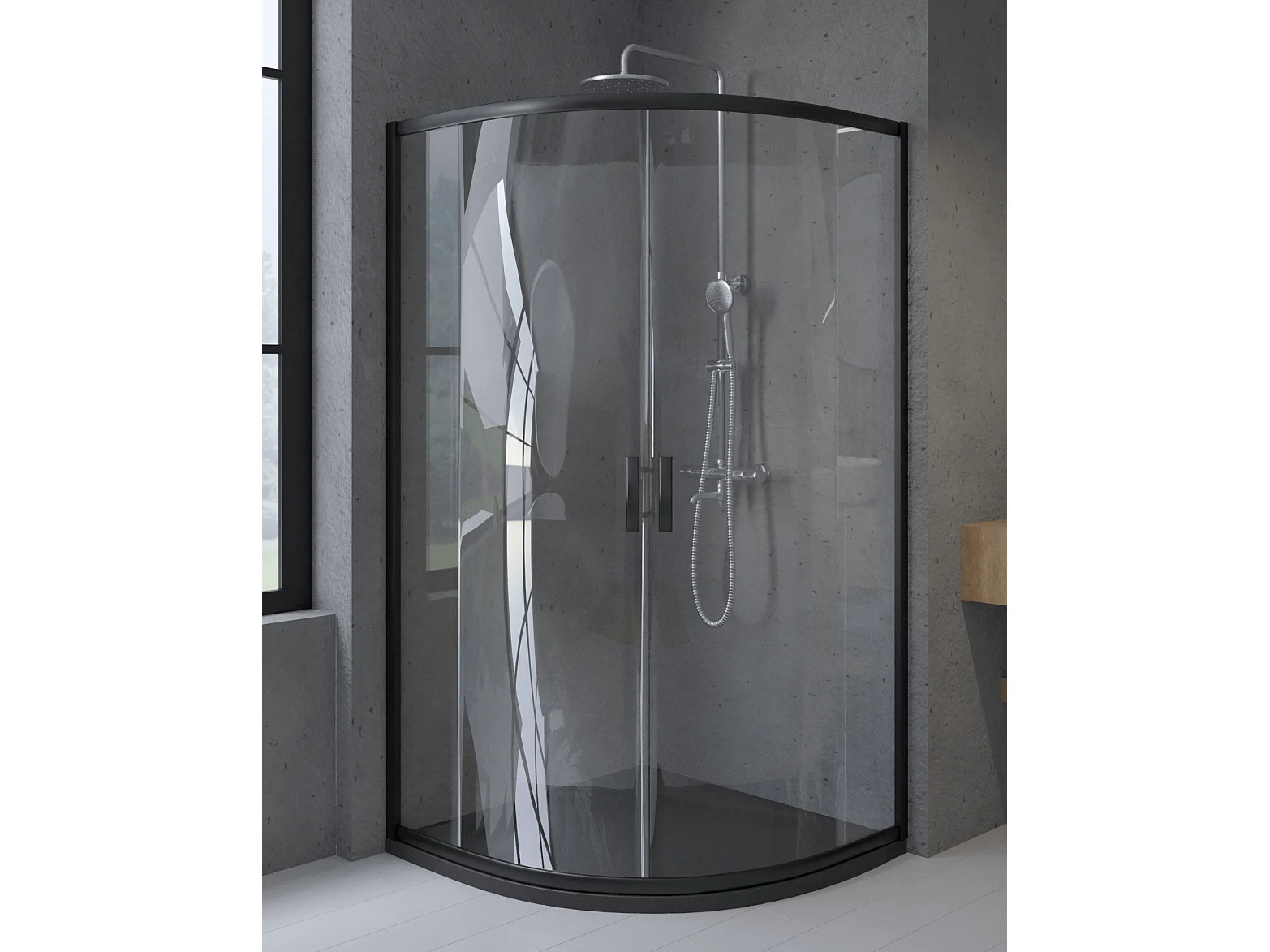 Douchecabine kwartcirkel HELA Zwart 90x90 190 cm Nano-glas Transparant Getemperd