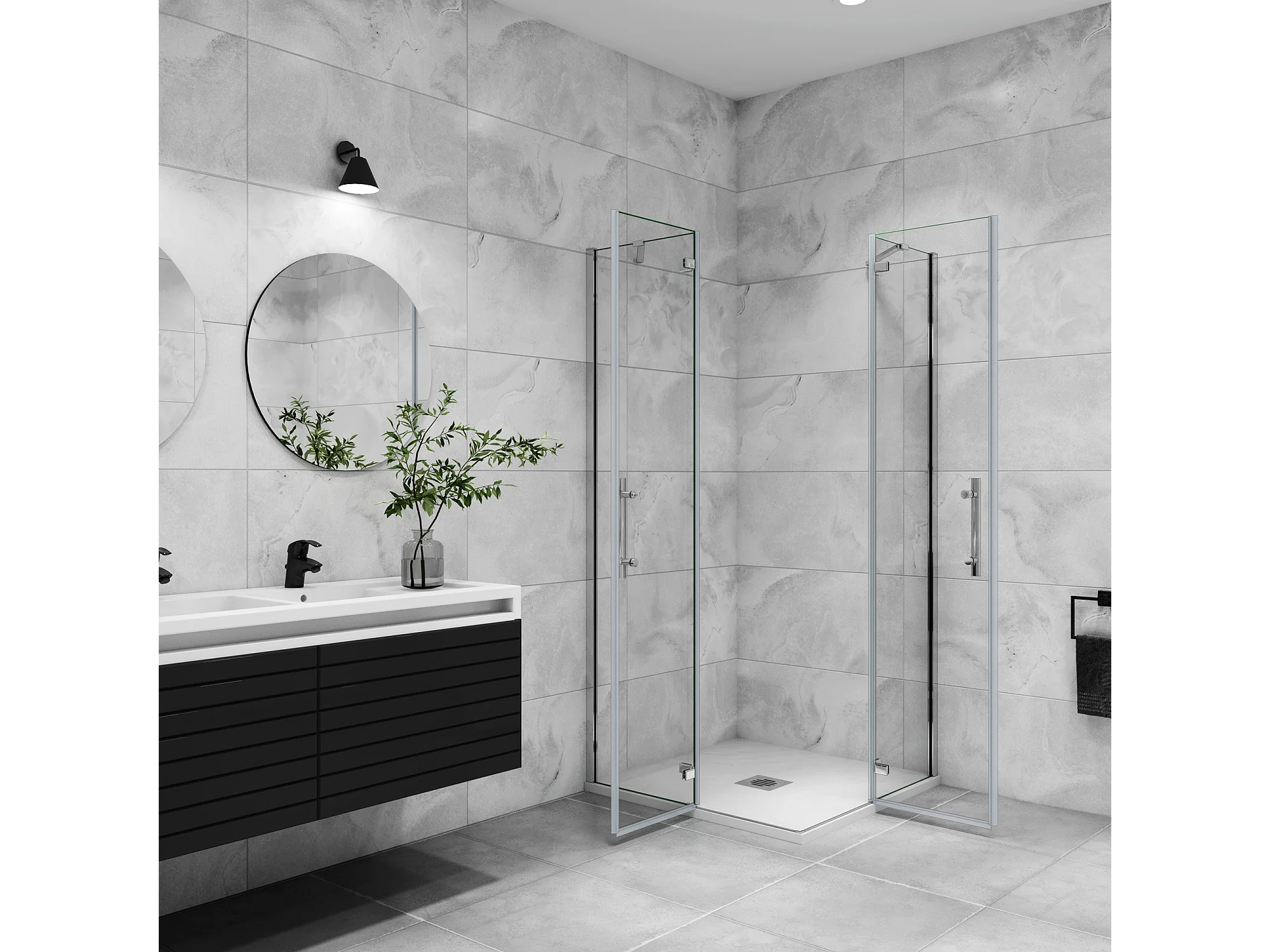 Douchecabine met dubbele draaideur,6mm helder veiligheidsglas nano coating,80x100x195cm,profiel van glanzend chroom.