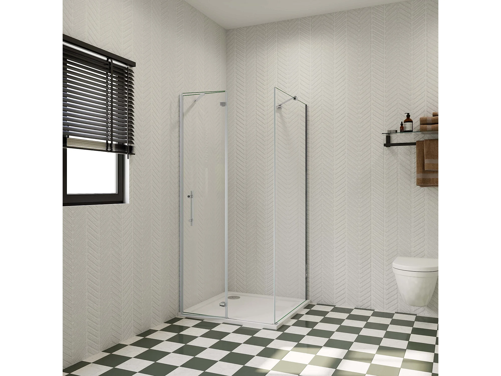 Douchecabine met vouwdeur en vaste zijwand,6mm NANO EasyClean veiligheidsglas,B:100xD:90xH:185cm,45cm Stabilisatiestang,chroom