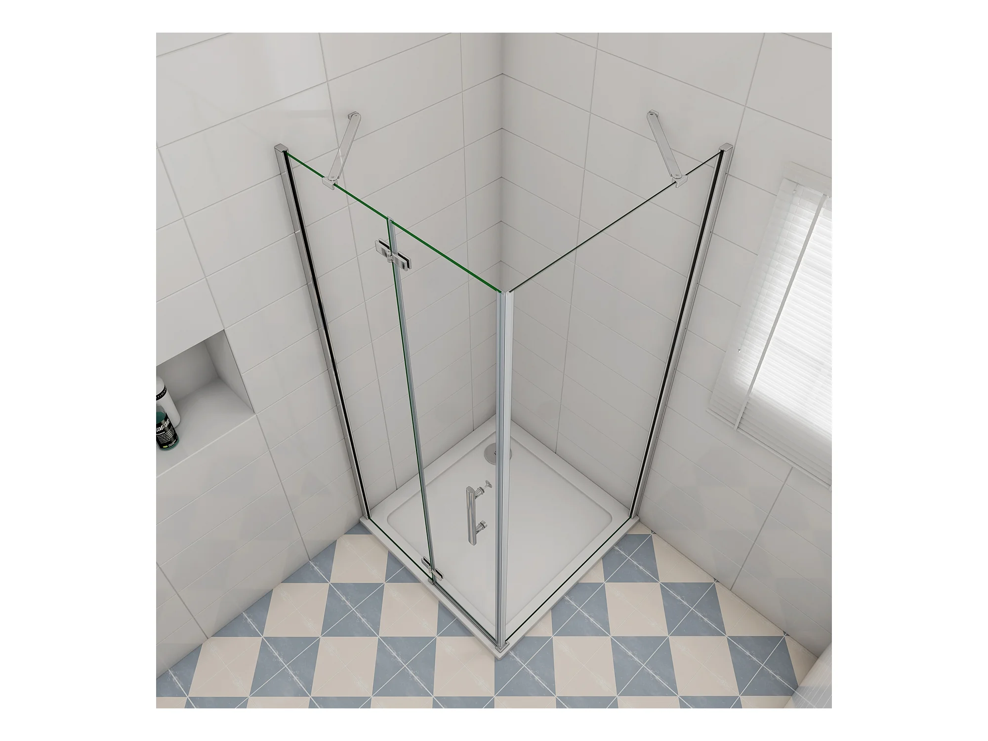 Douchecabine met vouwdeur en vaste zijwand,6mm NANO EasyClean veiligheidsglas,B:80xD:90xH:185cm,73-120cm Stabilisatiestang,chroom