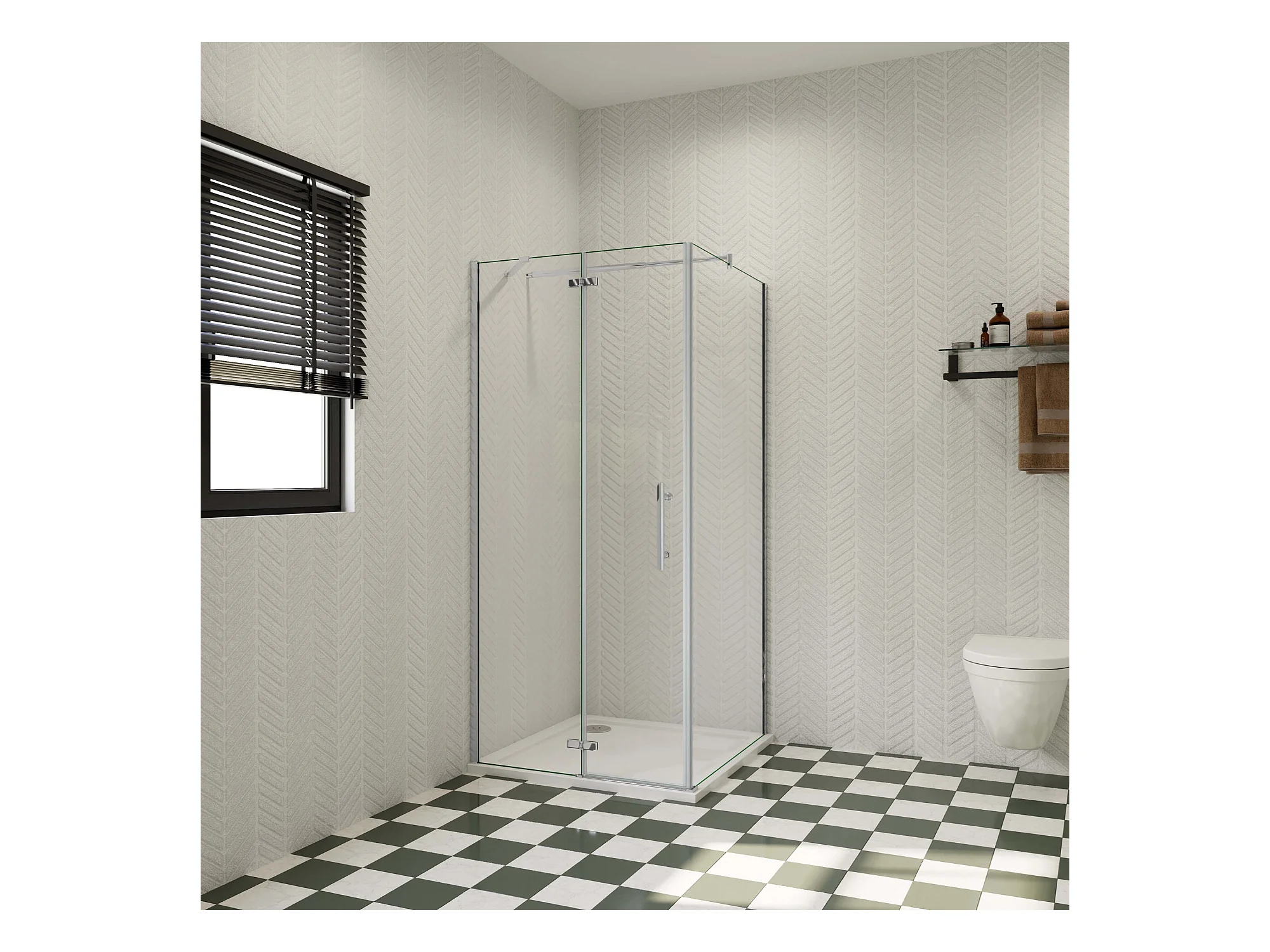 Douchecabine 90x90x185cm,draaideur+zijwand,6mm NANO EasyClean veiligheidsglas,F-vorm:90cm stabilisator (kan worden gesneden),profiel van glanzend chroom.