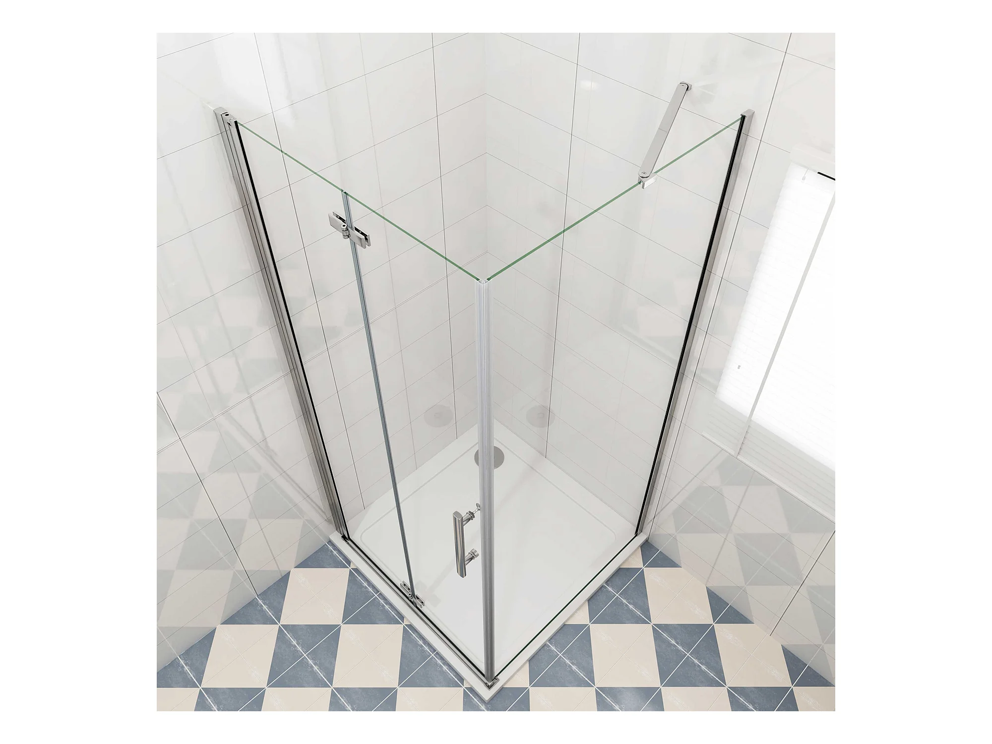 Douchecabine 90x90x195cm, draaideur+ vouwdeur (L-vorm),NANO EasyClean veiligheidsglas,stabilisatiestang 45cm