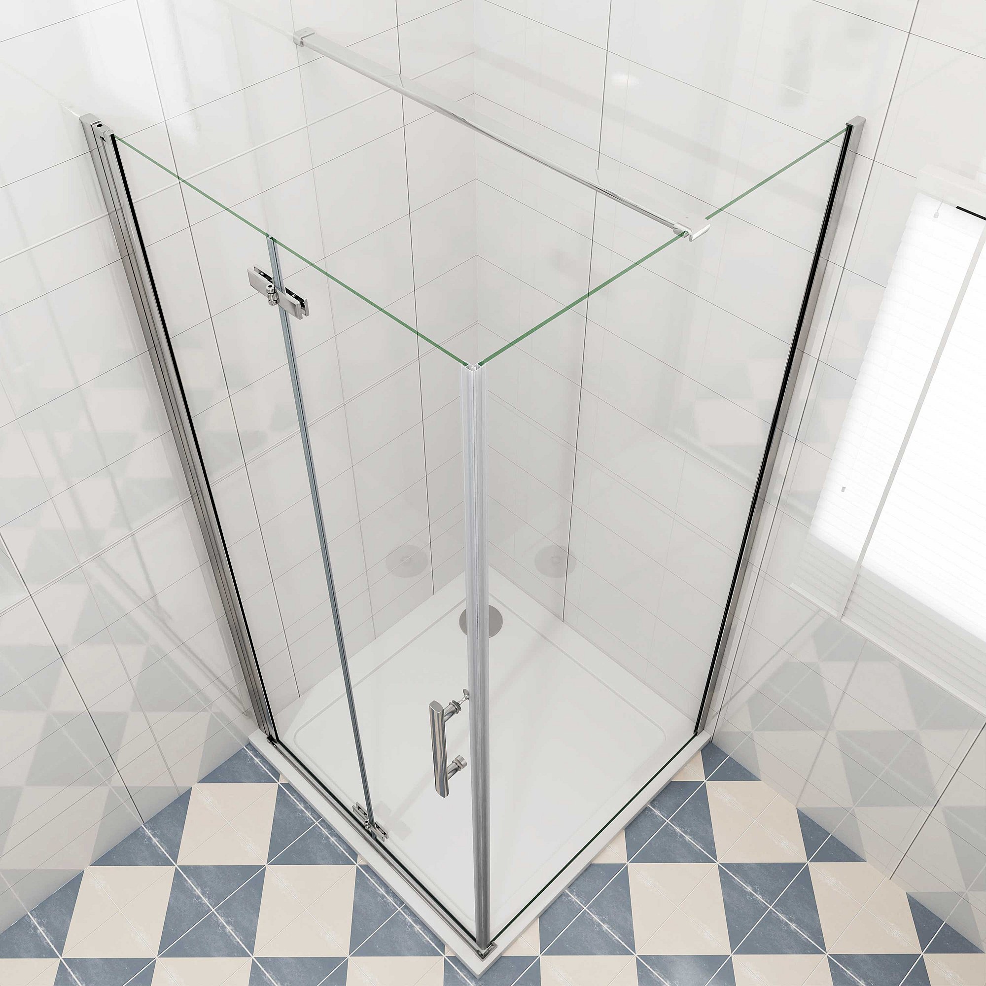 Douchecabine met vouwdeur en vaste zijwand ,NANO EasyClean veiligheidsglas,B:95xD:100x195cm,N-vorm 140cm Stabilisatiestang