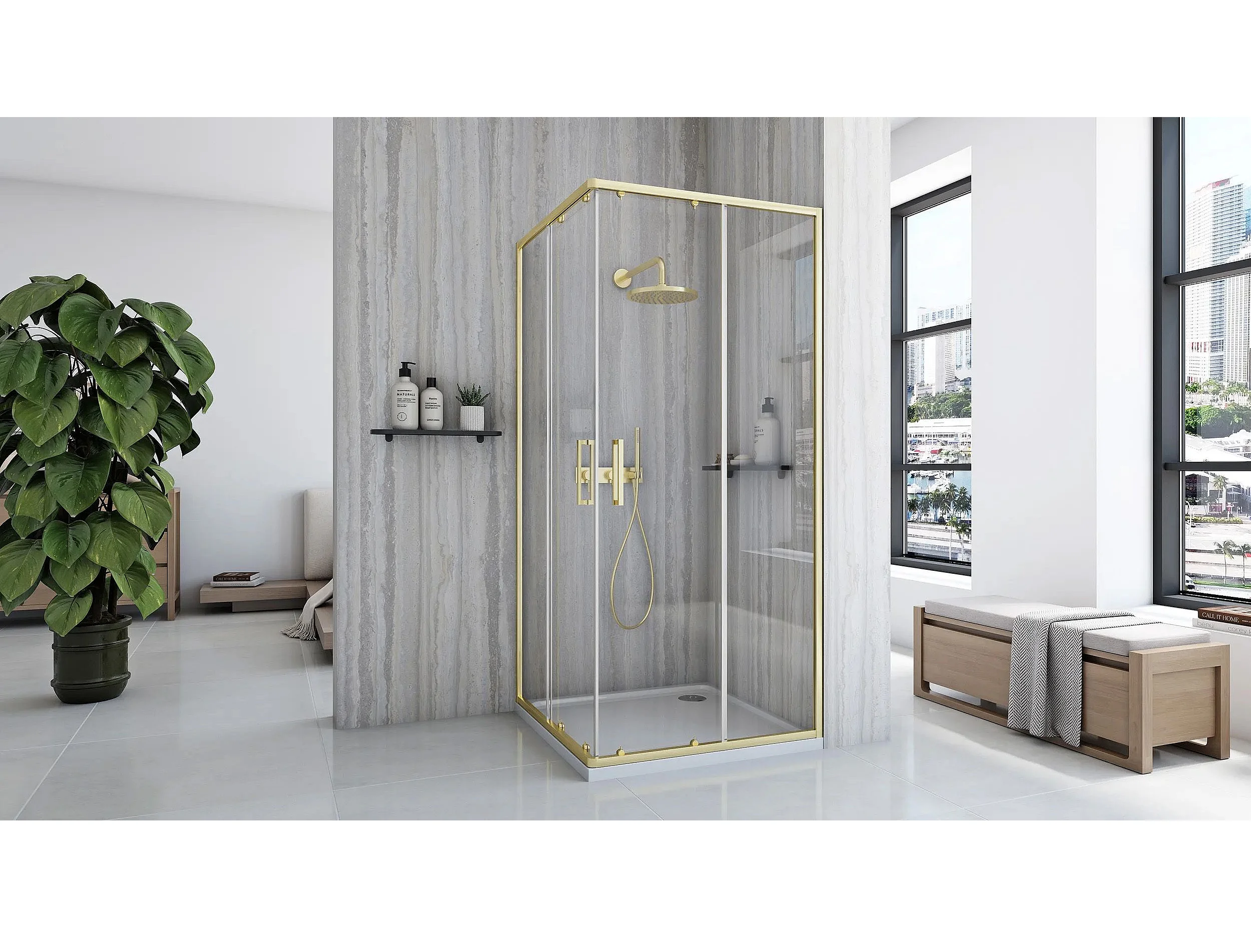 Douchecabine Rea City 80X80 Brush Gold + Douchebak Savoy Black