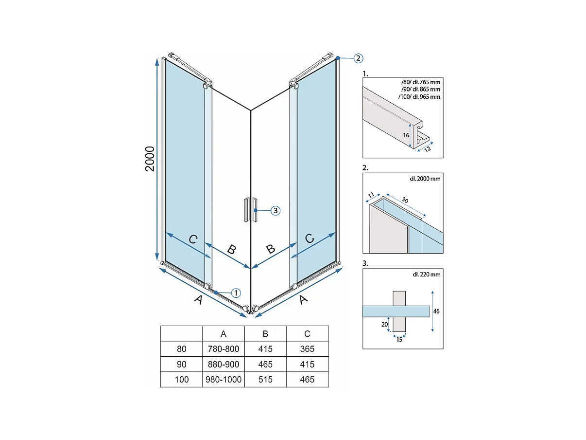 Douchecabine Rea Montana Double 80X80 Brushed Gold