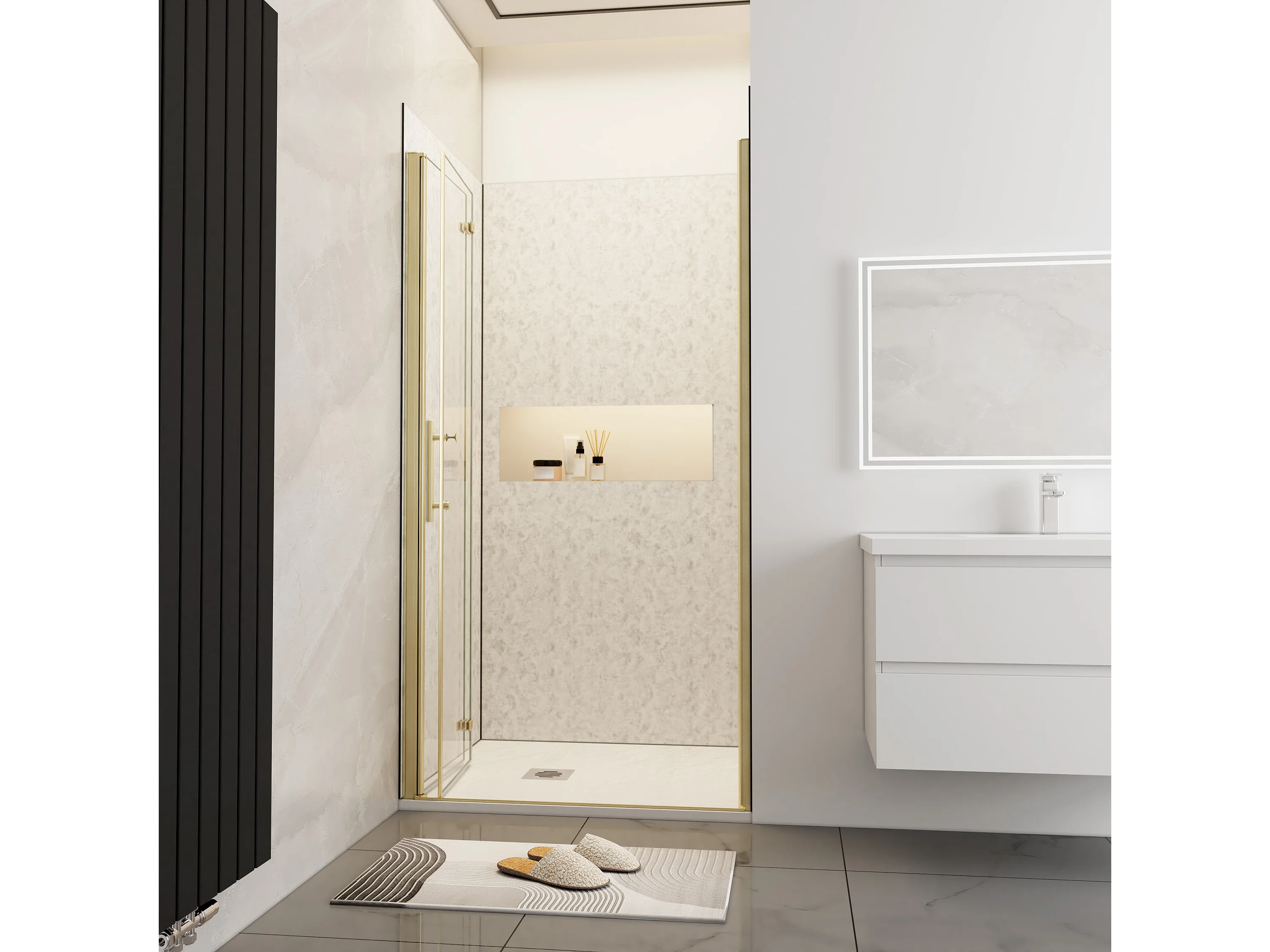 Douchedeur vouwdeur 110x195cm niche,6mm Helder Veiligheidsglas Easyclean,goud aluminium profiel