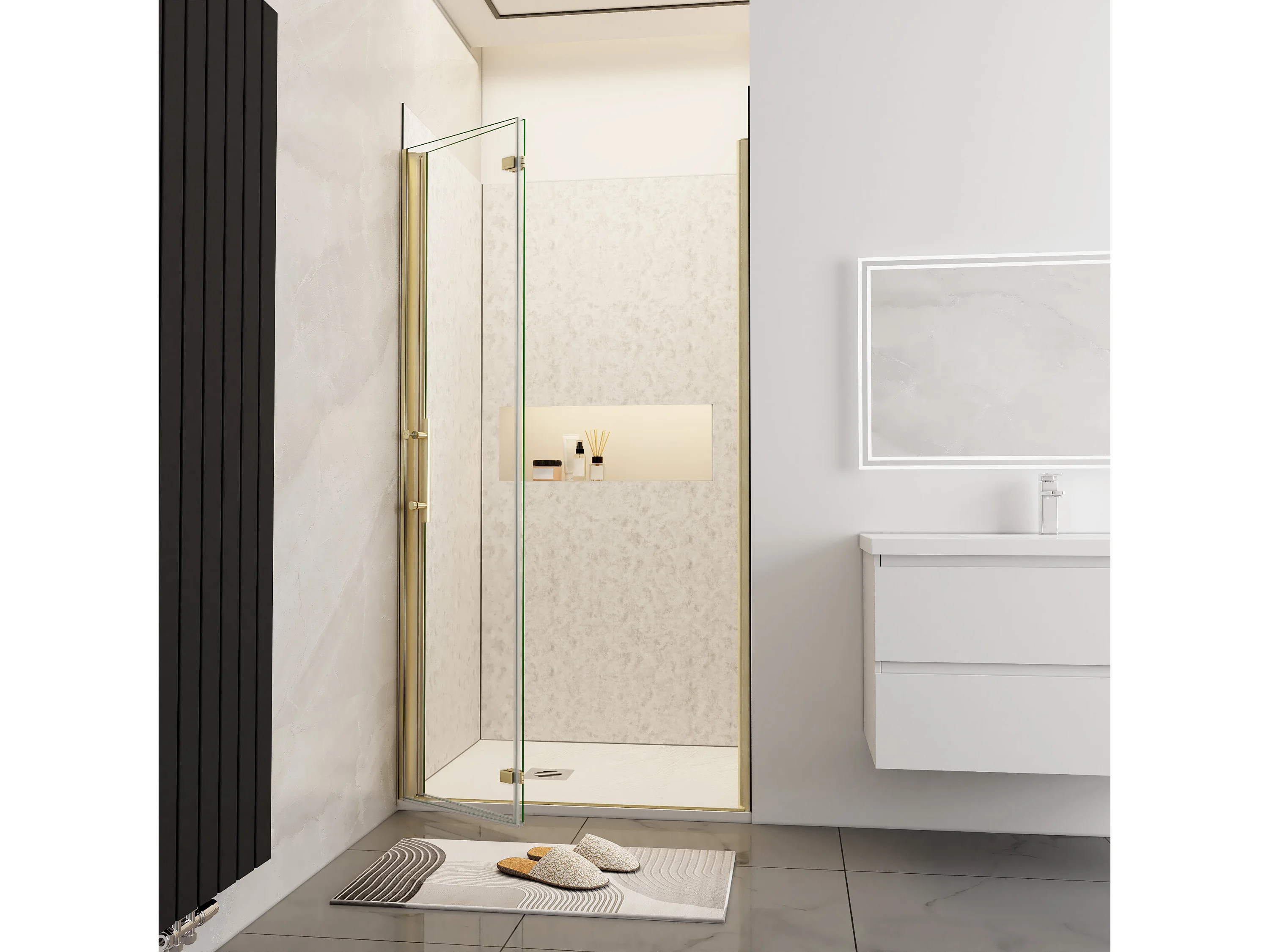 Douchedeur vouwdeur 70x195cm niche,6mm Helder Veiligheidsglas Easyclean,goud aluminium profiel