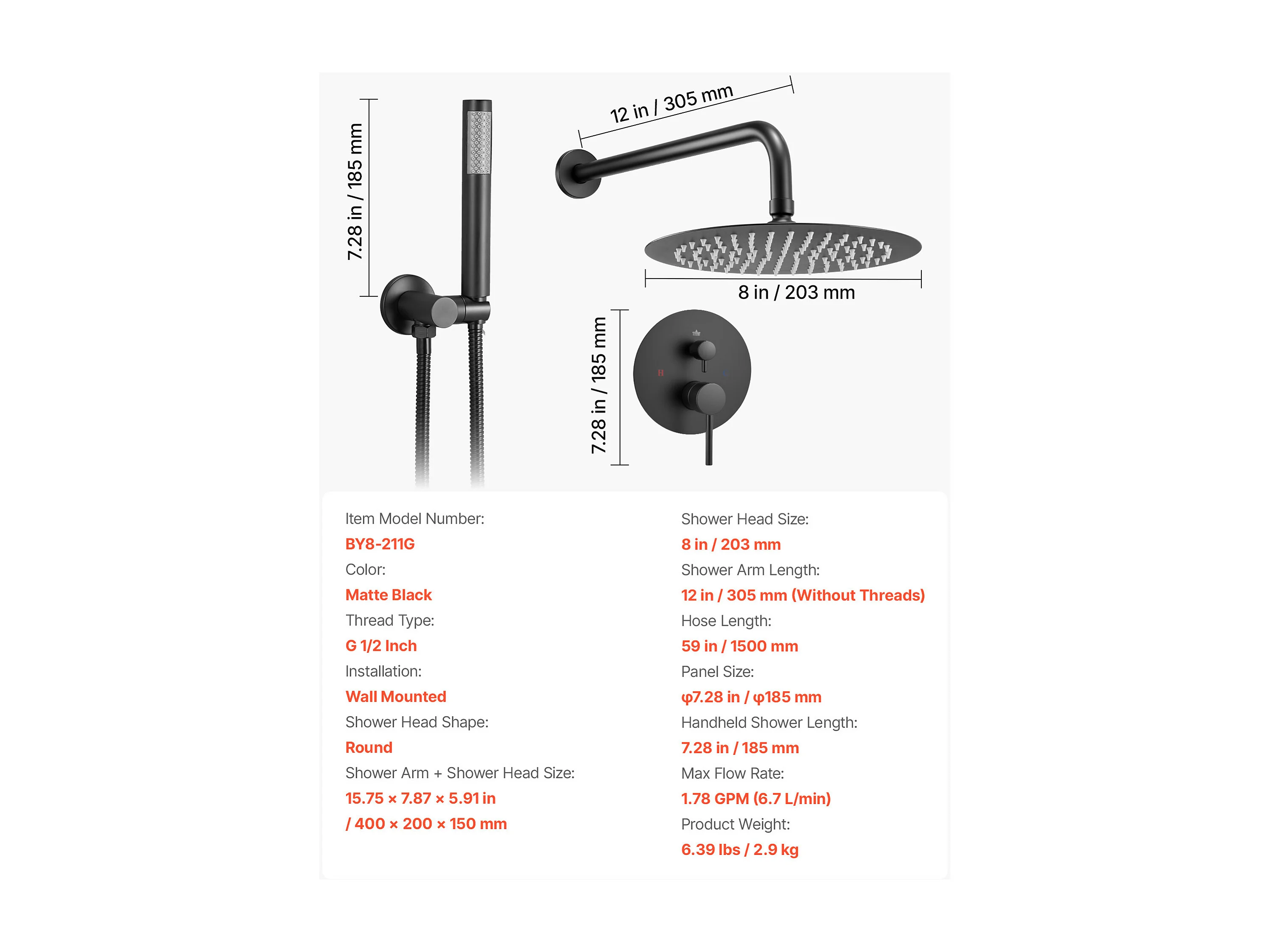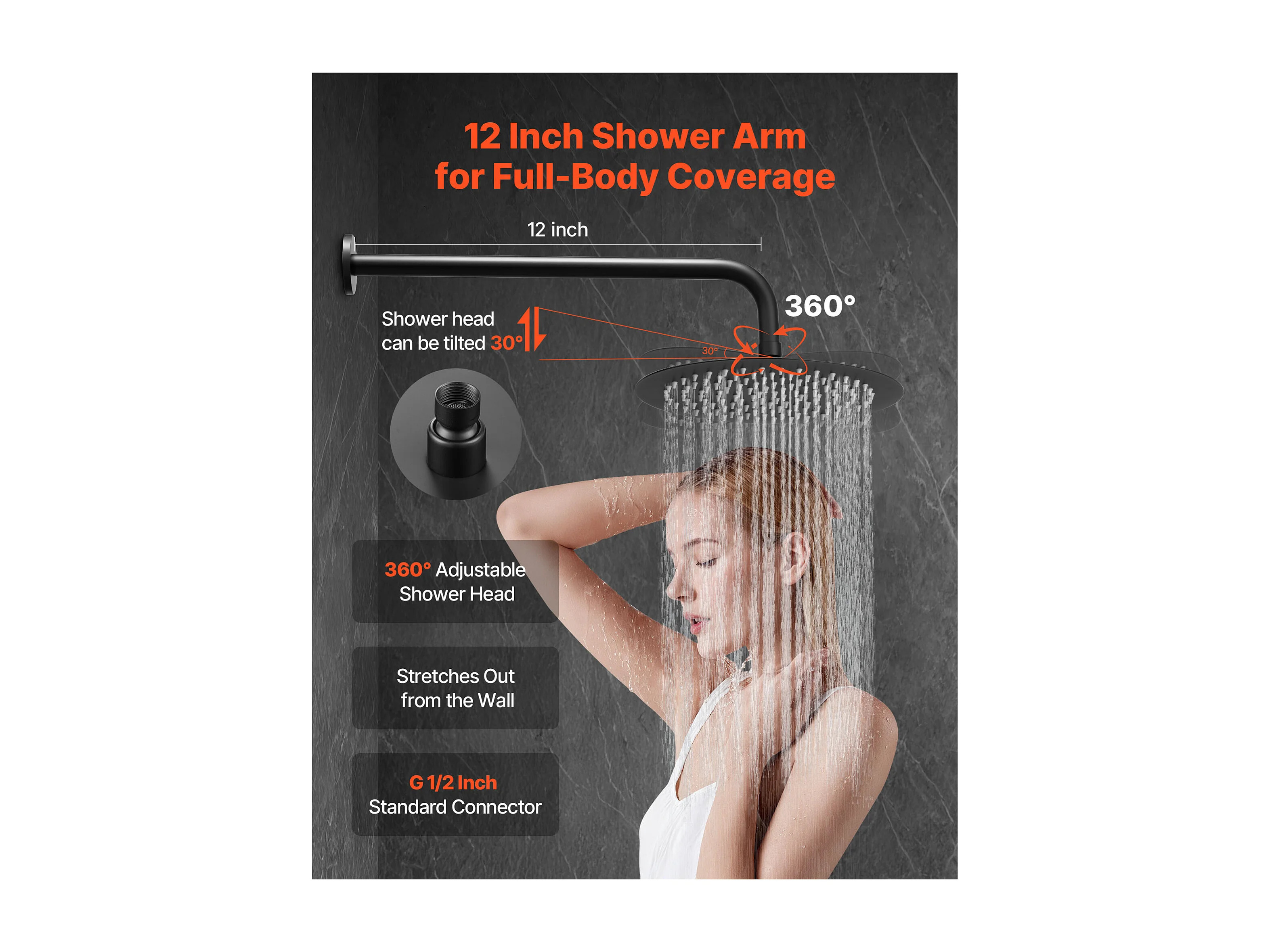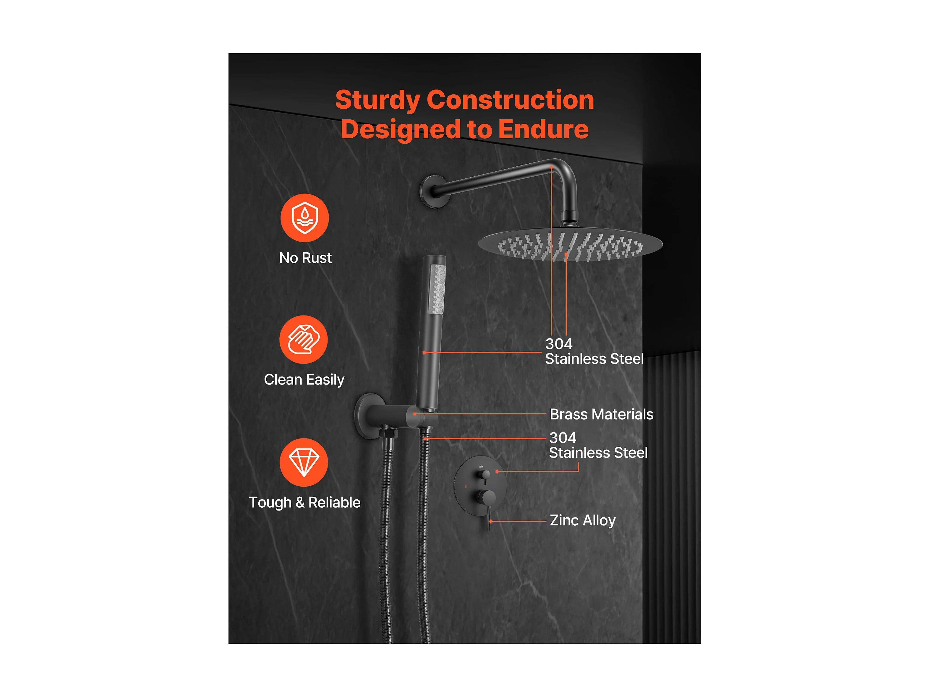 Douchekolom SucceBuy Doucheset, Douchesysteem met Ronde Douchekop van 203 mm, Handdouche en Afwerkset, Wandgemonteerd, Matzwarte Afwerking