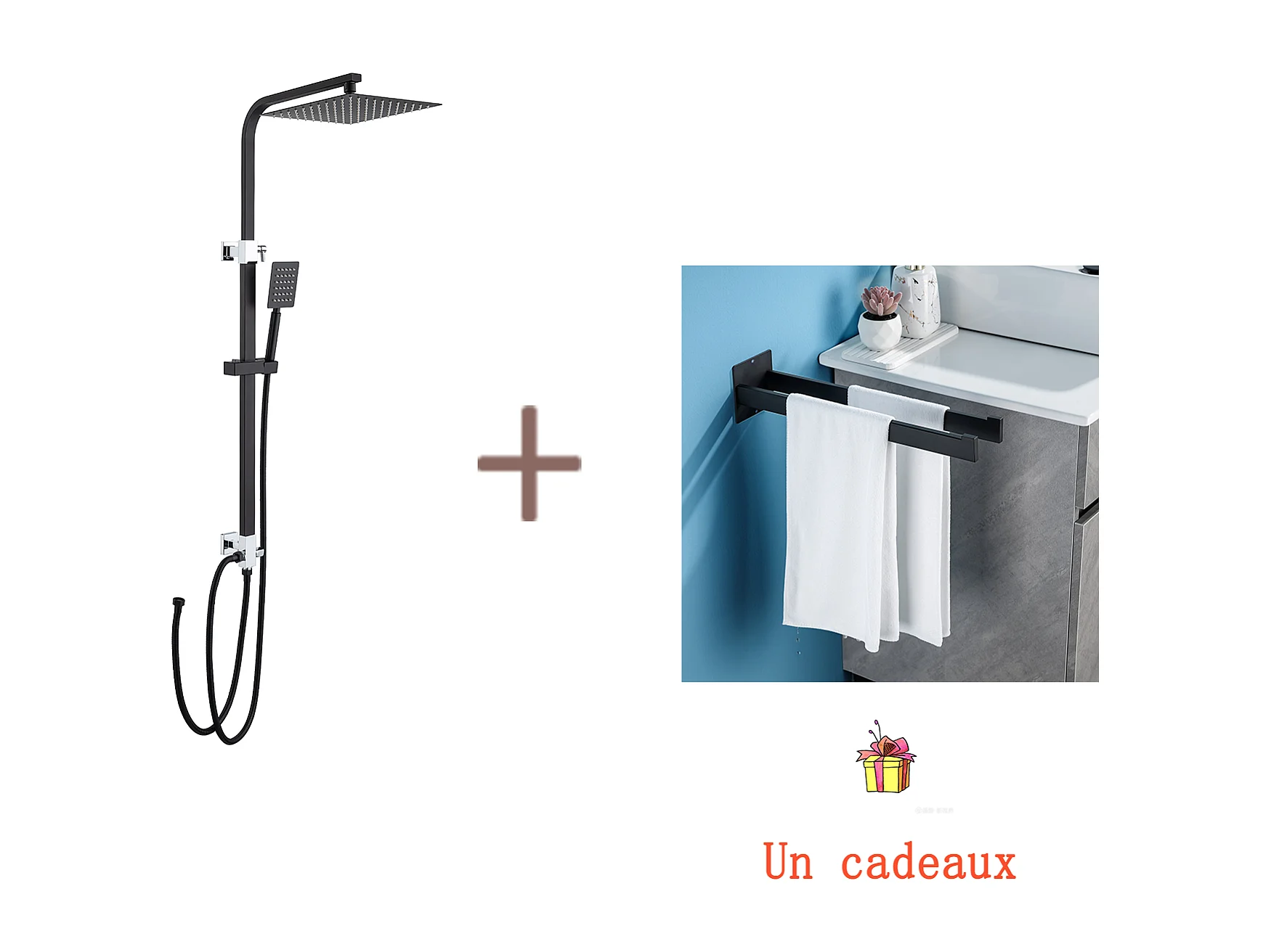 Douchekolom Zwart Zonder Mengkraan,690-1130 mm In Hoogte Verstelbaar+Handdoekhouder Badkamer Zelfklevend/Boren, Handdoekstangen Wandmontage, Zwart